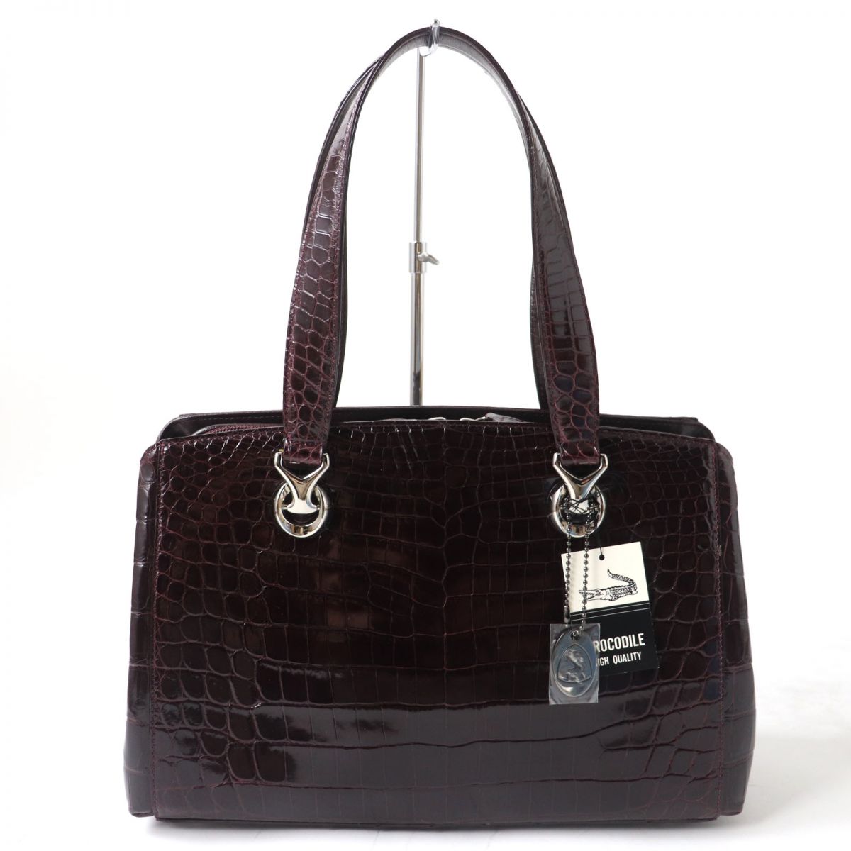 【ドンドン見直し】未使用品☆SANPO サンポー クロコダイルレザー ハンドバッグ ボルドー系 レディース JRAタグ付き 保存袋付き エレガント◎