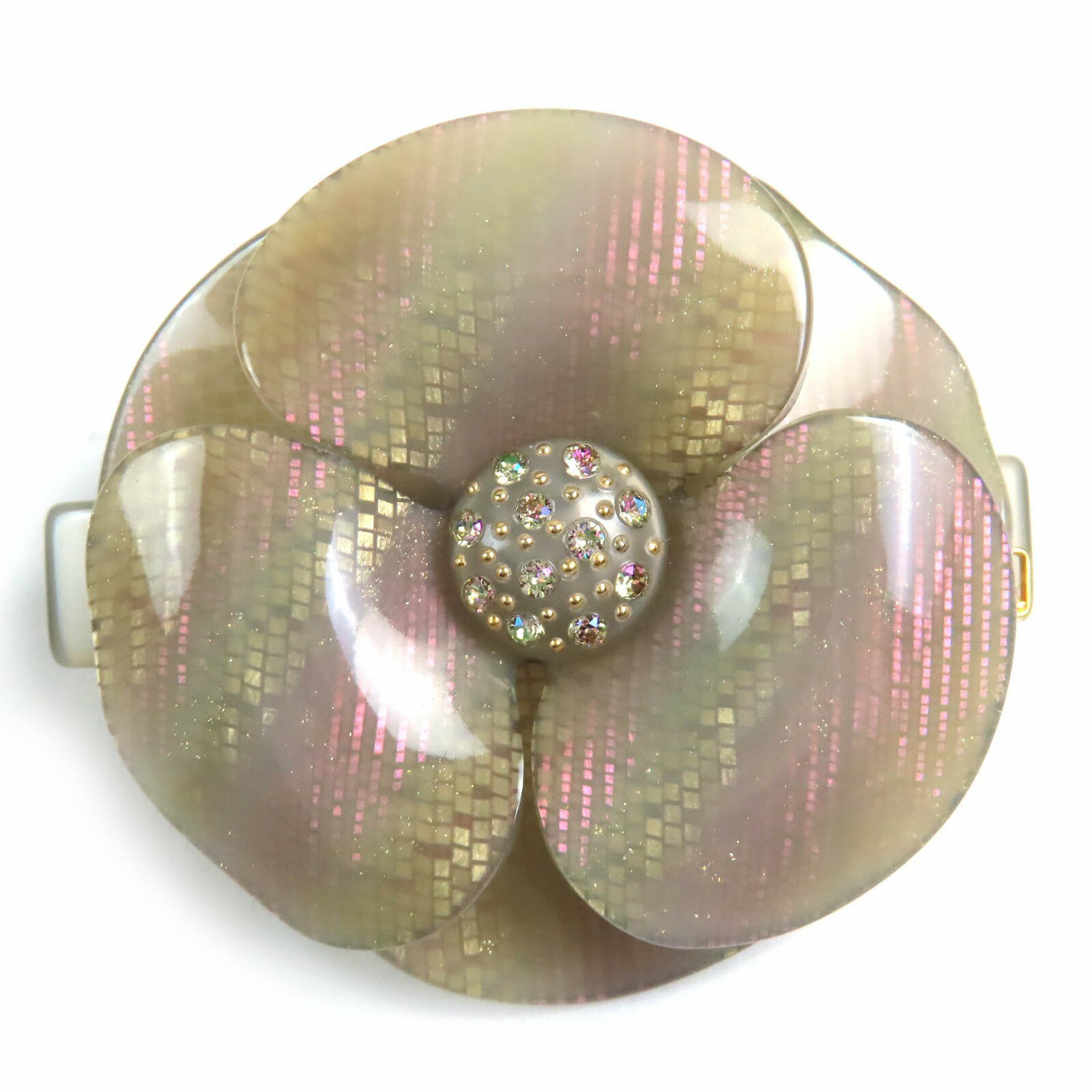 極美品★ALEXANDRE DE PARIS アレクサンドル ドゥ パリ AA6-12286-02 LISERAI スワロフスキー付 カメリア バレッタ (6 cm) ヘアアクセサリー ベージュ フランス製 レディース【中古】
