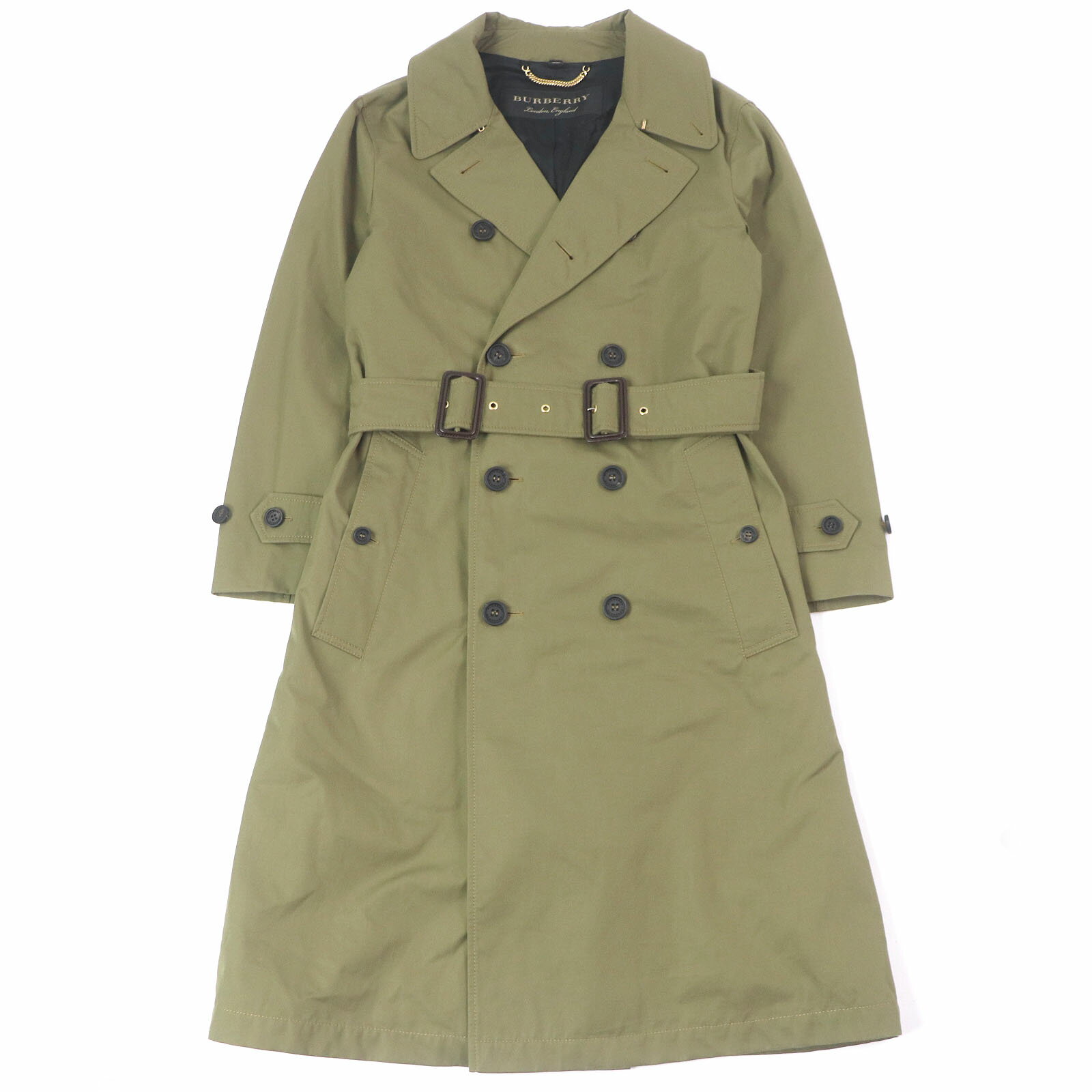 極美品△BURBERRY バーバリー 8083862 コットン100% 裏地ノバチェック柄 ロング ステンカラーコート ベージュ 42 正規品 レディース【中古】