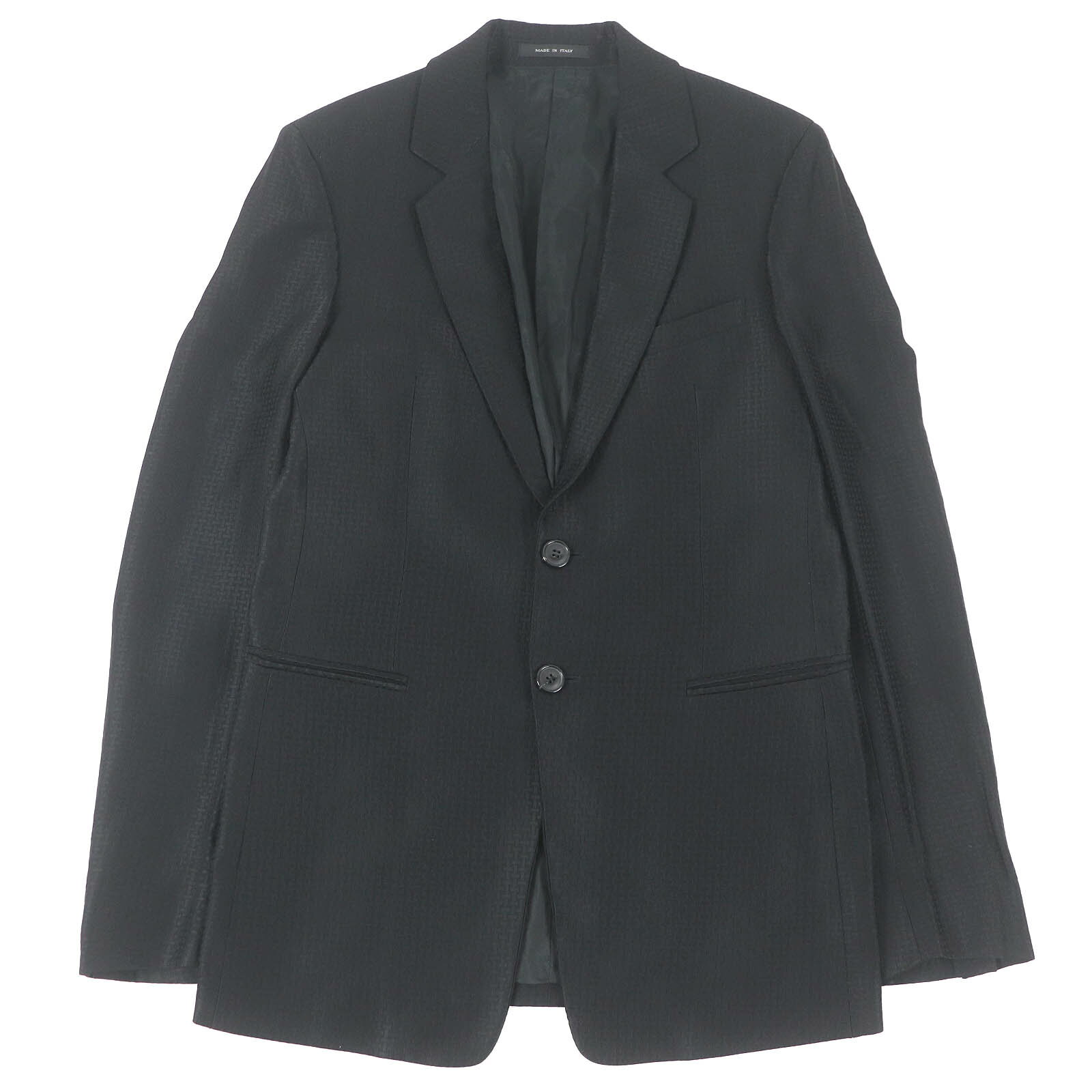 極美品 Emporio Armani エンポリオアルマーニ シルク混 黒タグ M LINE シングル フォーマルスーツ セットアップ ブラック 46 正規品 メンズ【中古】