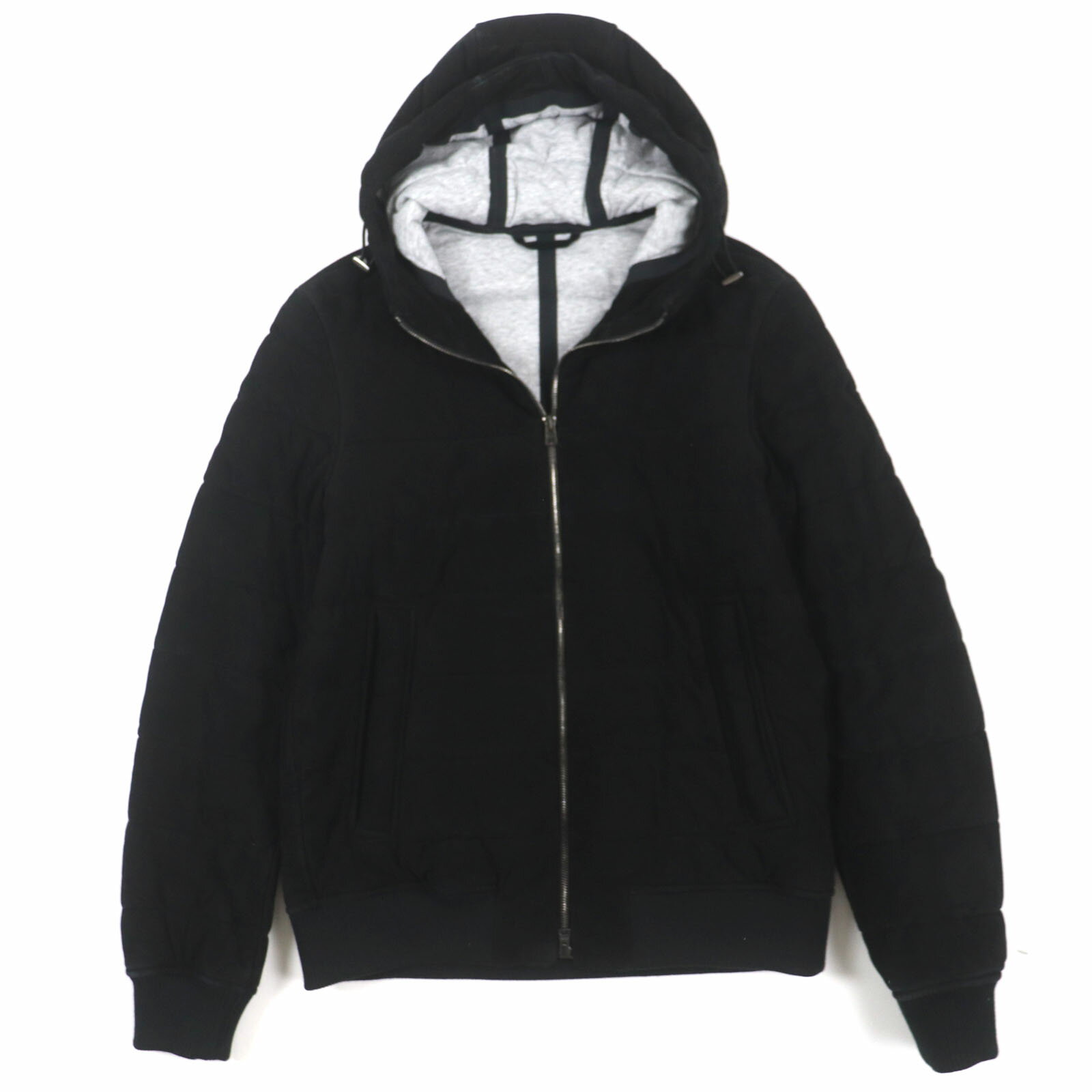 美品□Herno ヘルノ 2022年製 PI000943U チェック柄 フーデッド ダブルジップ ダウンジャケット ブラック ブラウン 52 イタリア製 正規品 メンズ【中古】