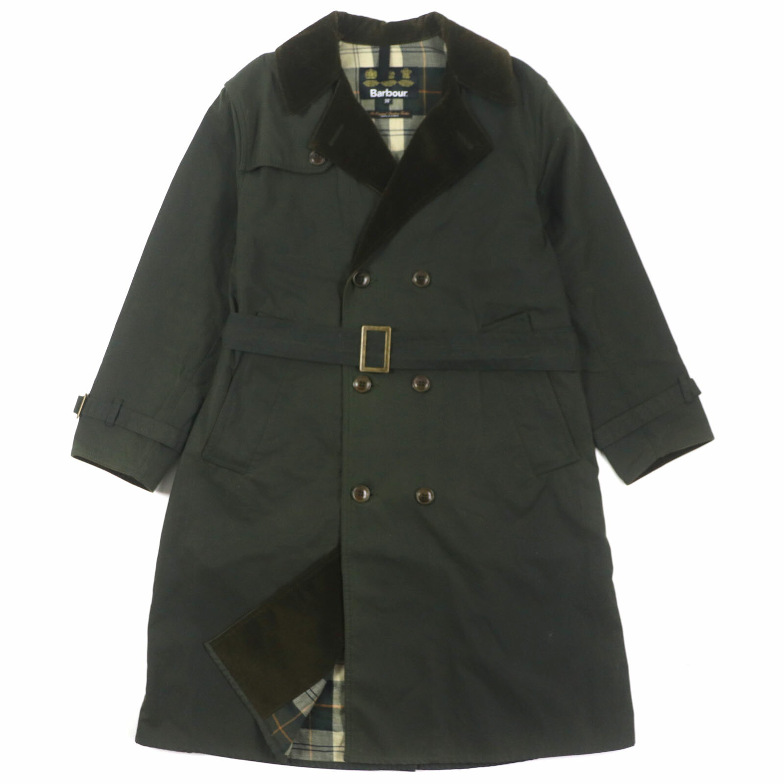 極美品□Barbour バブアー 2002219 グレンチェック 襟コーデュロイ ロゴボタン ステンカラーコート ロングコート ベージュ系 8 正規品 メンズ【中古】