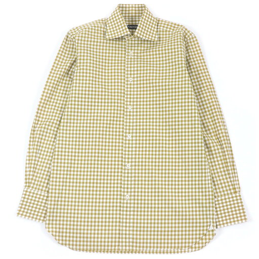 極美品□TOM FORD トムフォード ウール レザーディティール フライフロント ベルテッド ロング丈 ステンカラーコート カーキ 52 ハンガー・ガーメント付き イタリア製 正規品 メンズ【中古】