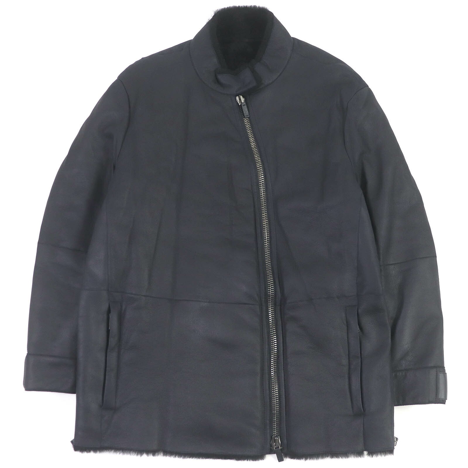 極美品○GIORGIO ARMANI ジョルジオアルマーニ 2020年製 BSB01P ムートン ラムレザー 黒タグ フーデッド シアリング パッチポケット コート パープル 52 ハンガー・ガーメント付き イタリア製 正規品 メンズ【中古】