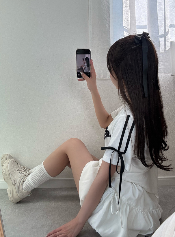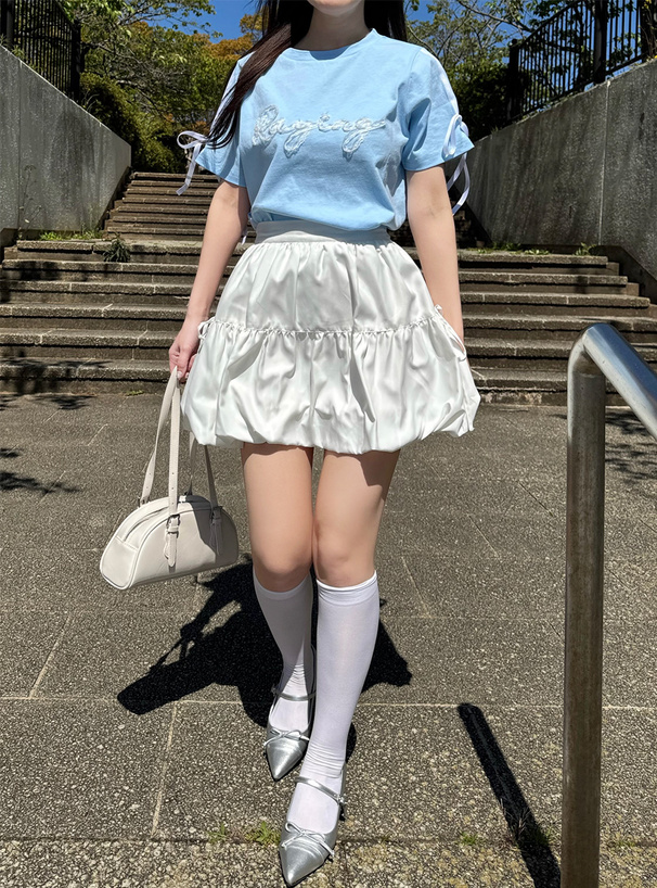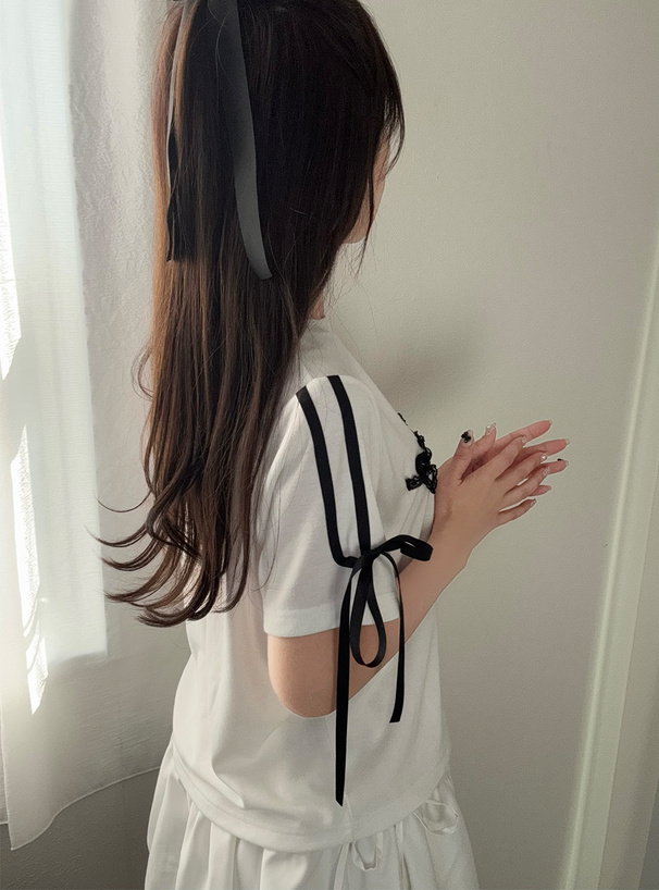 スリーブにラインとリボンをつけて、どこから見ても抜かりなく可愛い。