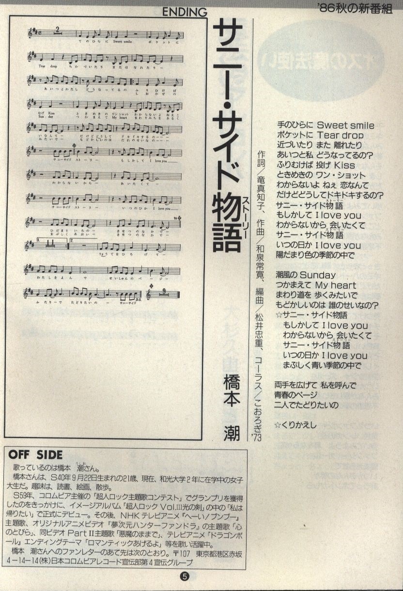 学習研究社 アニメディア別冊付録 ミュージックジャーナル’85 8511