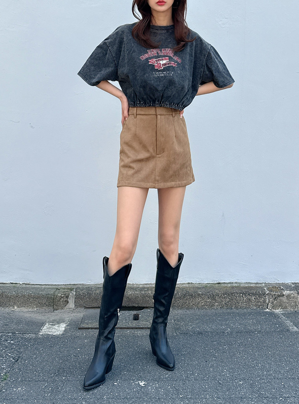 胸元の少しかすれたプリントデザインが辛口なアクセントに。