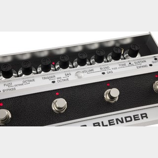 Fender Shields Blenderは、ケヴィン独自のファズボックスの回路を丁寧にハンドトレースすることで、彼が所有する70年代のヴィンテージFender Blenderのトーンを再現しています。このヴィンテージ回路をベースに、オリジナルのファズヴォイスをコントロールしブレンドする全く新しい方法が構築されており、4つの簡単にアクセスできるフットスイッチを使用して実用的なパフォーマンスを念頭に置いて作られています。フットスイッチで切り替え可能な2つのファズチャンネルは、それぞれ専用のレベルコントロールを備えており、ファズヴォイスをクリーンシグナルとブレンドしたり、強力なサブオクターブファズをブレンドすることができます。また、SAGフットスイッチで演奏の強弱によってすべてをコントロールすることが可能になり、これまでになかったようなスパッタリングやダッキング効果を提供します。