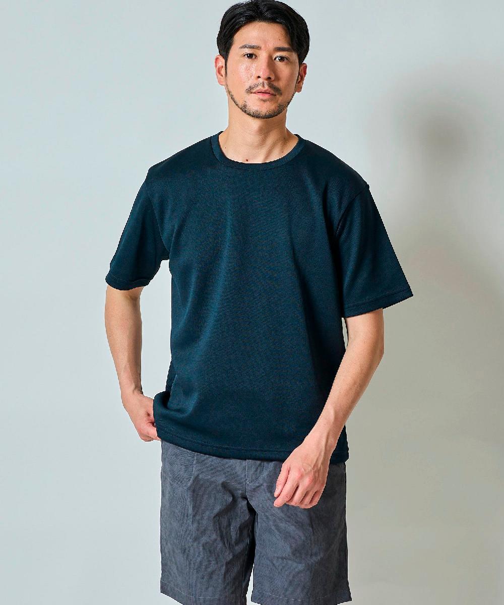 夏に最適なストレッチする鹿子クルーネックTシャツ