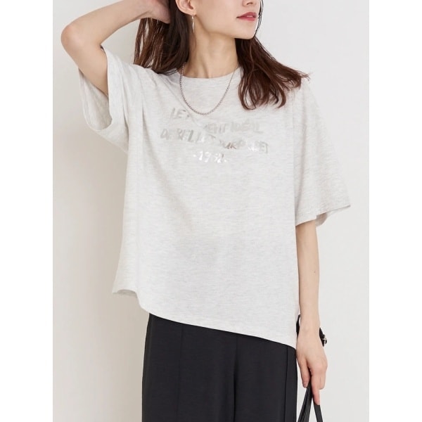 光沢感のある箔プリントのロゴが目を惹くTシャツ