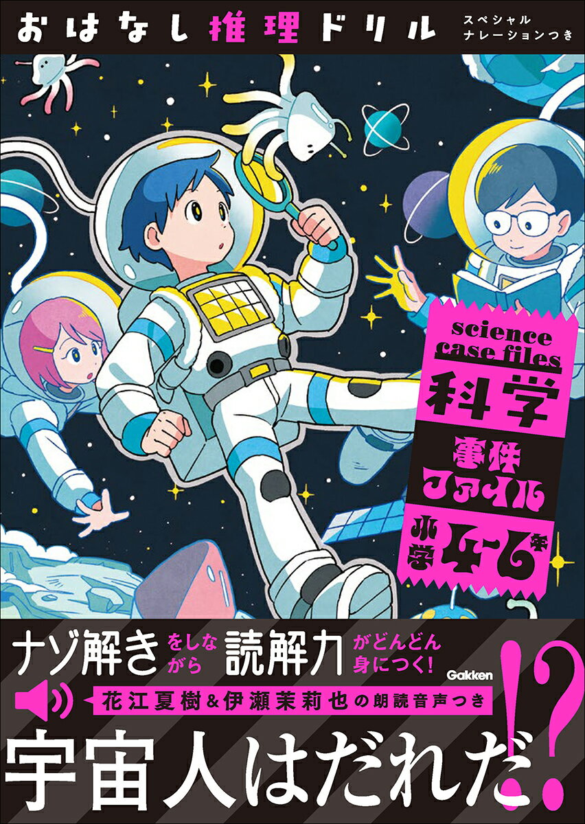 【人気声優の朗読で、物語の情景を想像する力が身につく、スペシャルドリル!】『おはなし推理ドリル』シリーズは、事件についてのおはなしを読み、文章の中から手がかりを見つけて、事件の真相を推理する、小学4〜6年生向けの文章読解ドリルのシリーズです。創刊10年目を迎え、シリーズ累計30万部を突破し※1、多くの小学生に支持されてきました。このたび、シリーズの中でも人気の高い『科学事件ファイル』に、超豪華声優の朗読音声がついたスペシャルバージョンが登場します。科学の知識が身につく16の事件のおはなしを収録した『科学事件ファイル』のナレーションは、花江夏樹さんと伊瀬茉莉也さんが担当。スマートフォンやタブレットで紙面の二次元コードを読み取ると、臨場感あふれる音声を聞くことができます。朗読音声を聞くことは、楽しいだけでなく、脳科学において学習効果も高いといわれています。音声を聞くことで想像力が活性化し※2、さらに、文字を読みながら音声を聞くことでその効果は増す※3 という調査結果もあります。おはなしを聞いて・読んで、事件の真相や犯人を楽しく推理し、読解力を身につけましょう。※1 『おはなし推理ドリル』シリーズ計6点の累計発行部数(2025年6月現在)※2 The Association for Information Science and Technology(情報科学技術協会)調査結果より※3 板倉徹『ラジオは脳にきく』(東洋経済新報社)より【本書の特色】◆楽しくナゾ解きができる!『科学事件ファイル』には、科学の知識が身につく16の事件のおはなしを収録しています。おはなしを読み、事件の真相や犯人を推理しましょう。◆読解力がどんどん身につく!文章の中から推理の根拠を見つけ、問題を解くことで、読解力がみるみる伸びます。◆音声学習で想像力が育つ!『科学事件ファイル』には、声優・花江夏樹さん&伊瀬茉莉也さんの朗読音声がついています。物語の情景を想像する力につながります。★収録事件ファイル一覧01 宇宙人は、だれだ!? p602 真実の思い出 p1003 見破られたうそ p1404 父さんは犯人じゃない p1605 火をつけたのは、あなただ! p2006 ふろに水を入れた犯人 p2407 料理対決ショーのわな? p2808 命のかかった水運び p3009 青いぼうしの男 p3410 かぎは見えなかった? p3811 宝島はどれだ? p4212 閉じこめられて p4613 かくれ家をさがせ p5014 まほうの手 p5415 無人島で生き延びろ p5816 コップは知っている p60解答とアドバイス p64