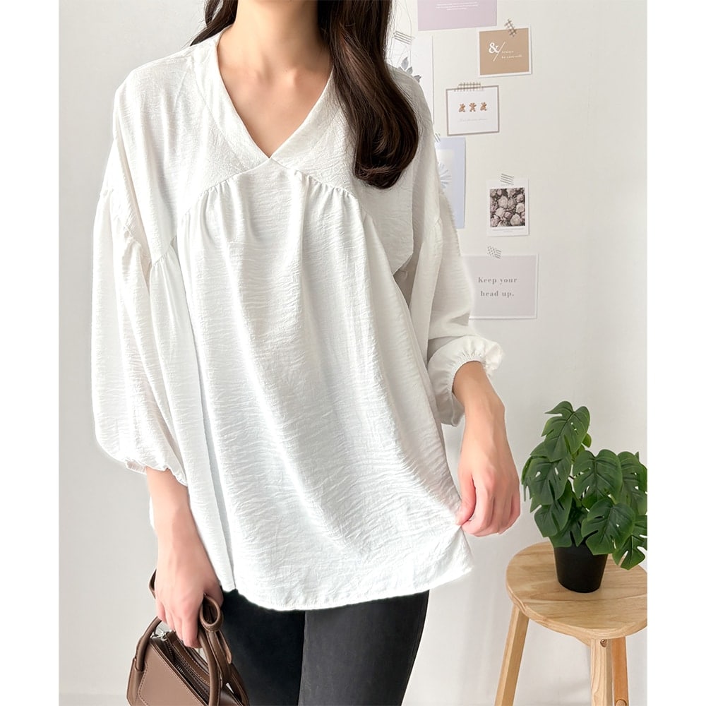 Vネックギャザーブラウス