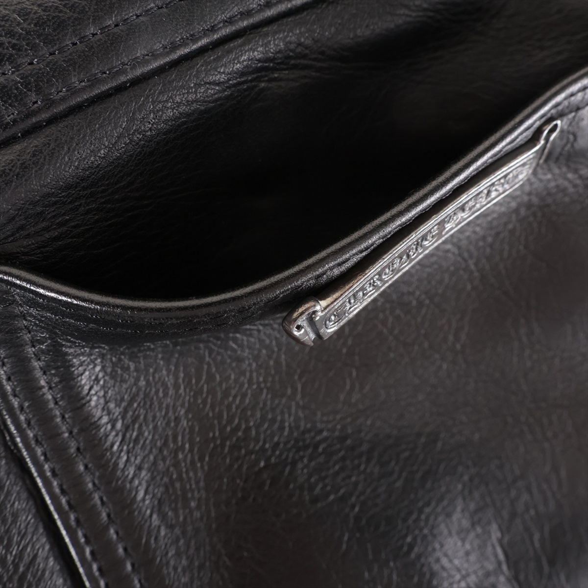 美品□CHROME HEARTS クロムハーツ レザー切り替え セメタリークロスパッチ カーペンター ロングパンツ ナイロンパンツ ダークネイビー 33 USA製 メンズ【中古】