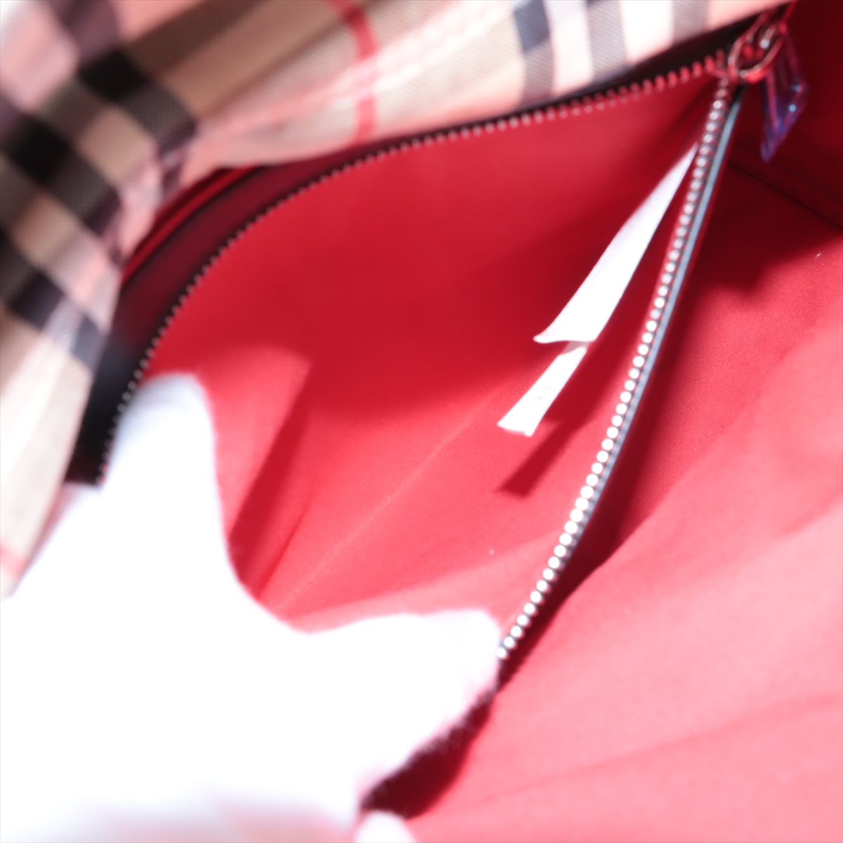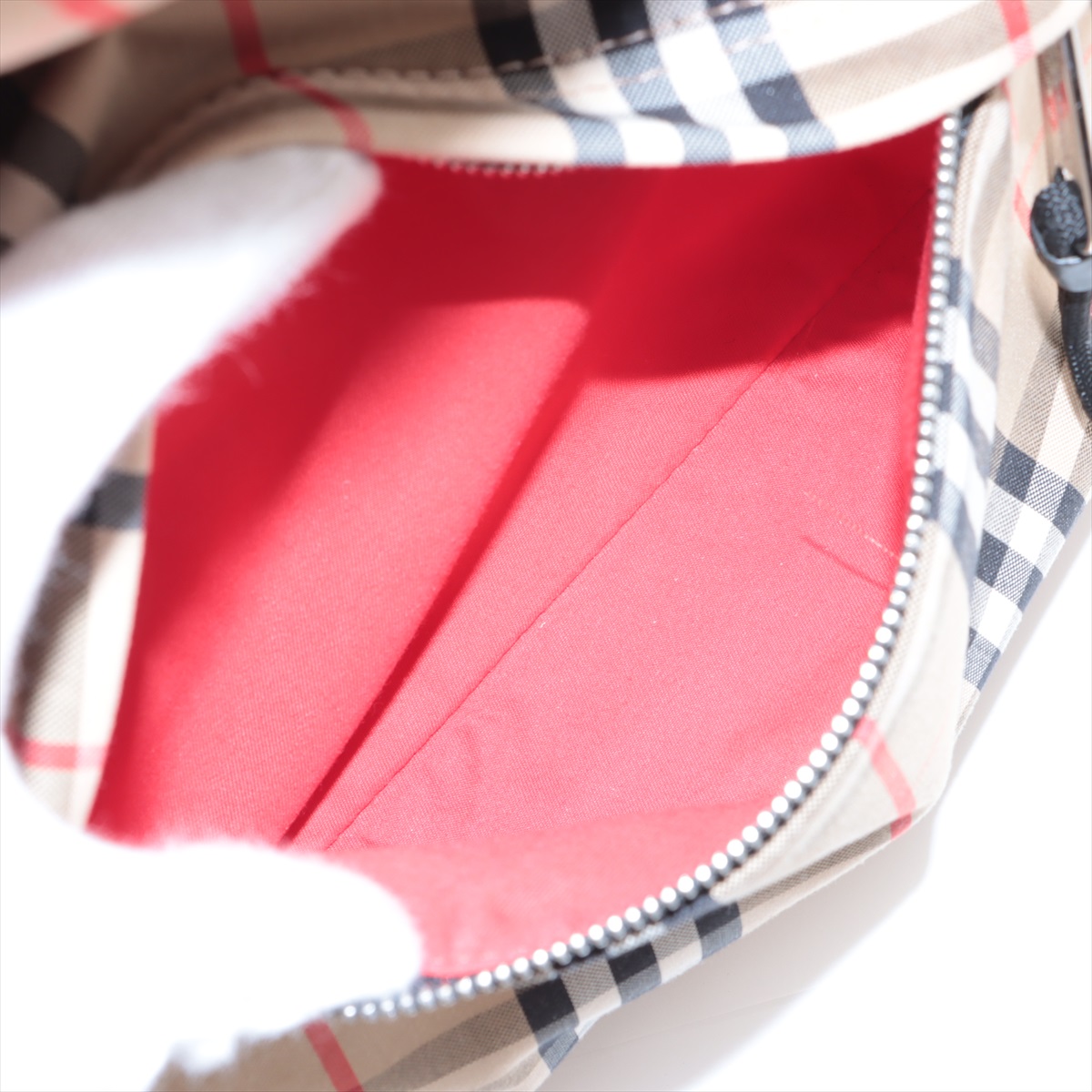 美品★BURBERRY バーバリー 8067159 バーバリー プローサム レザーロゴパッチ付 ノバチェック柄 アクセサリーポーチ ベージュ 箱・保存袋付き レディース【中古】