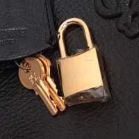 ロエベ アマソナ28 ストラップ付 レザー黒 ハンドバッグ ゴールド金具