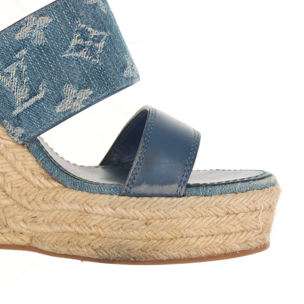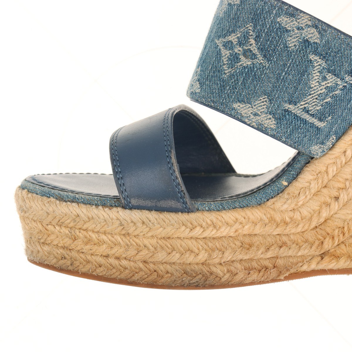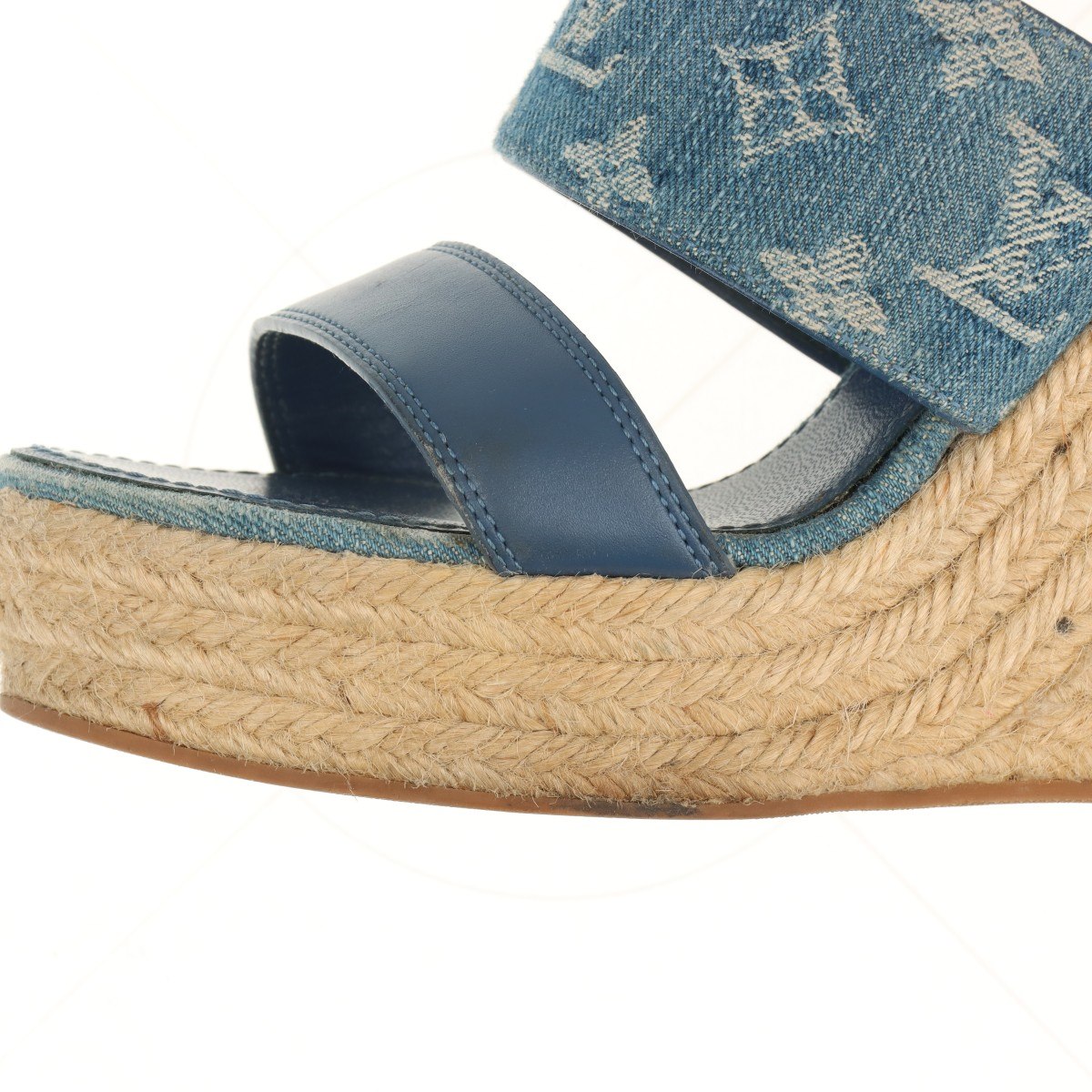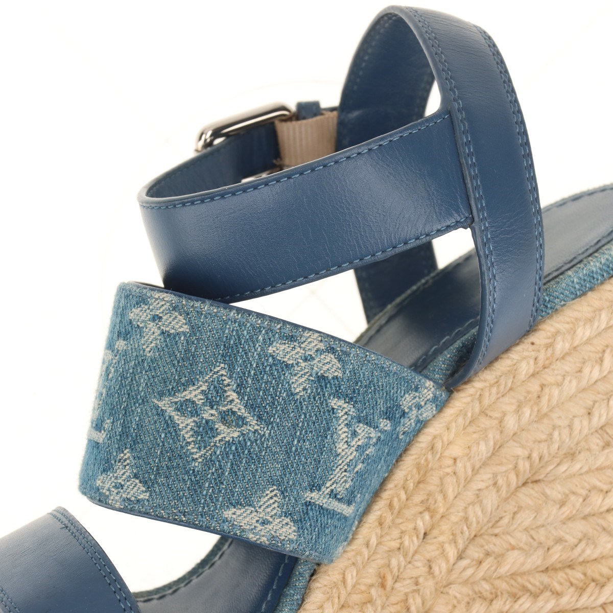 LV ルイヴィトン 2020年 スターボードライン モノグラムデニム ウェッジソール サンダル バックストラップ付 ブルー