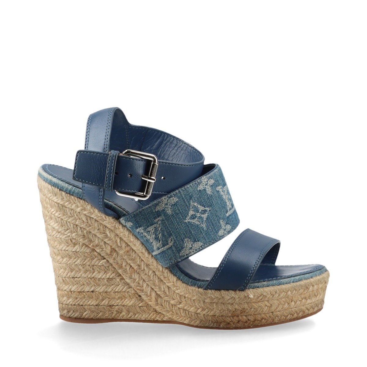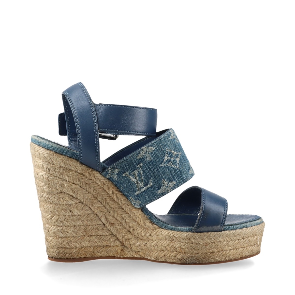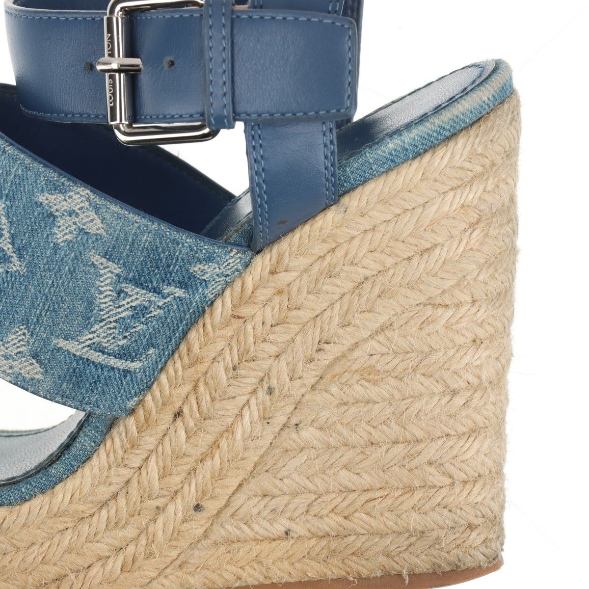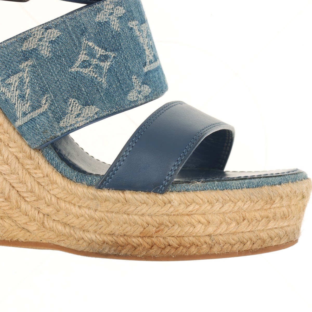 LV ルイヴィトン 2020年 スターボードライン モノグラムデニム ウェッジソール サンダル バックストラップ付 ブルー
