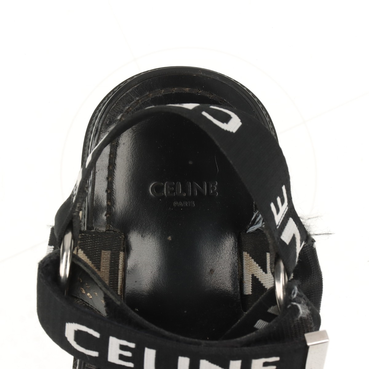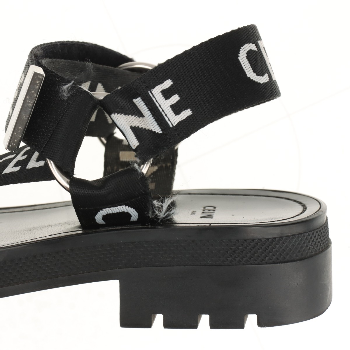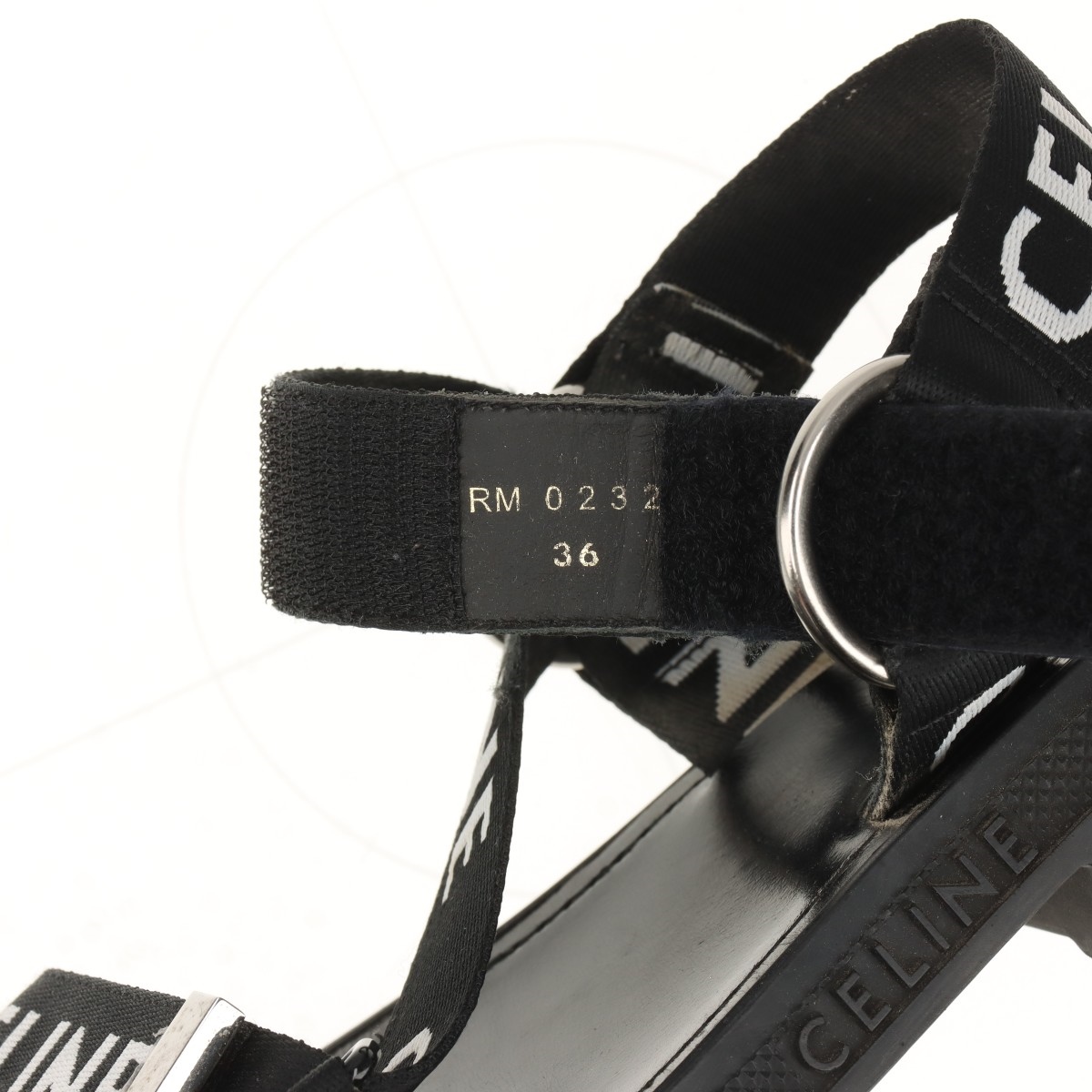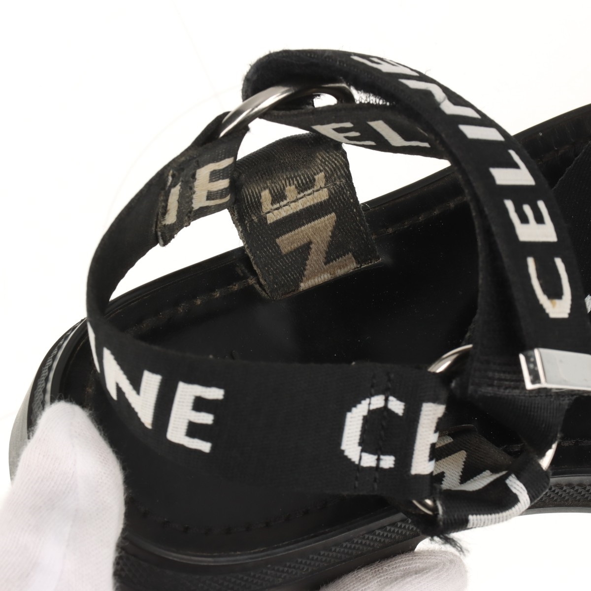 セリーヌ レオ ストラッピー エディ期 ファブリック サンダル 38 レディース ブラック RM0232 ベルクロストラップ