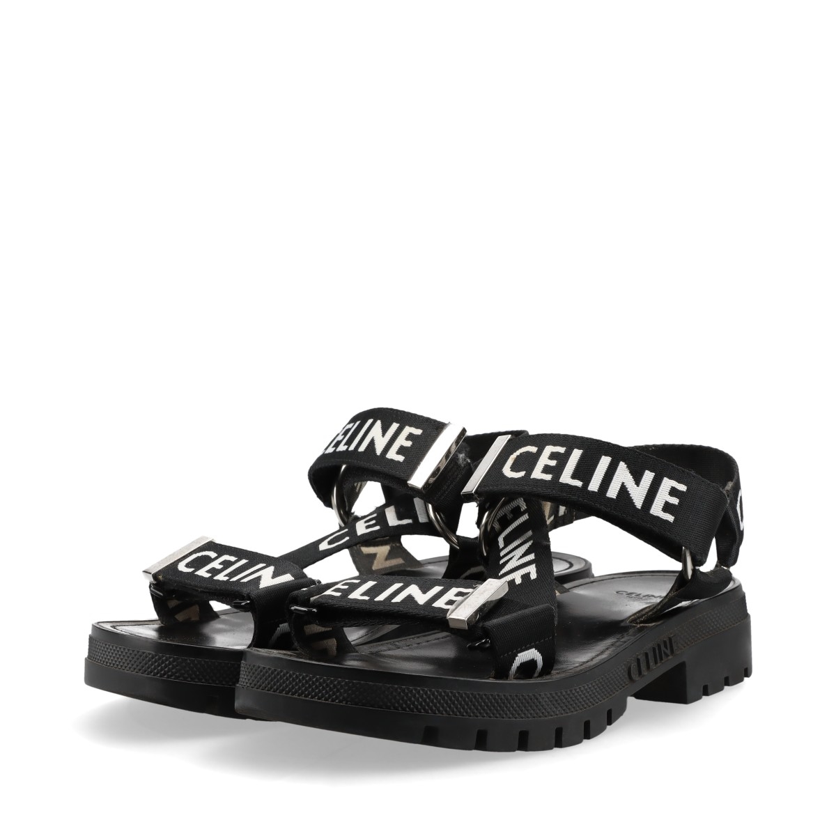 セリーヌ CELINE レオ サンダル 靴 シューズ レザー ブラック ホワイト スポーツサンダル ロゴ ベルクロ