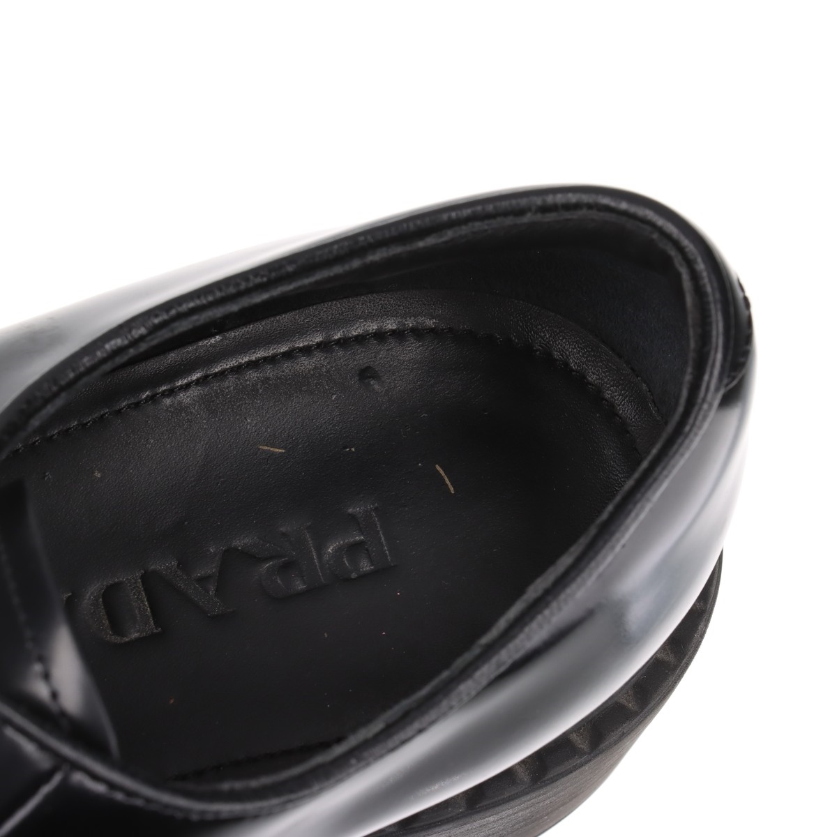 【現行品/美品】PRADA プラダ チョコレート ブラッシュドレザーローファー 黒 革靴 イタリア製 三角プレート 厚底 レディース