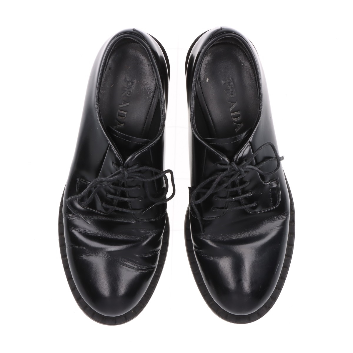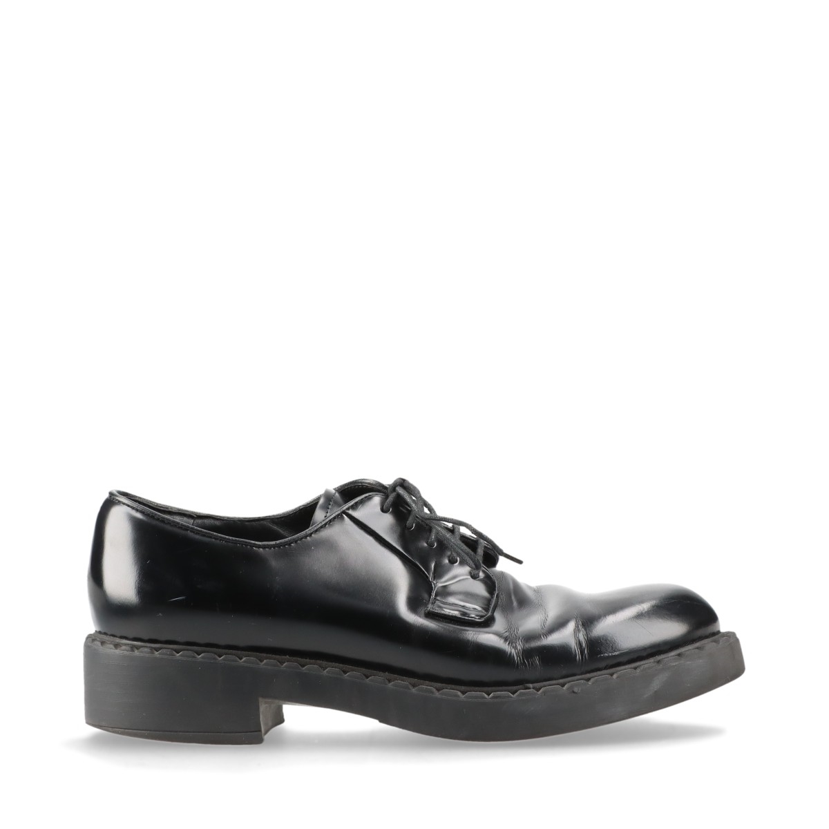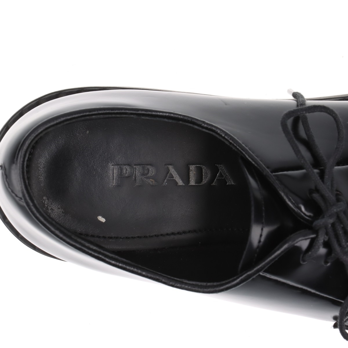 プラダ チョコレート レザー レザーシューズ EU35 1/2 レディース ブラック トライアングルロゴ 箱 保存袋あり