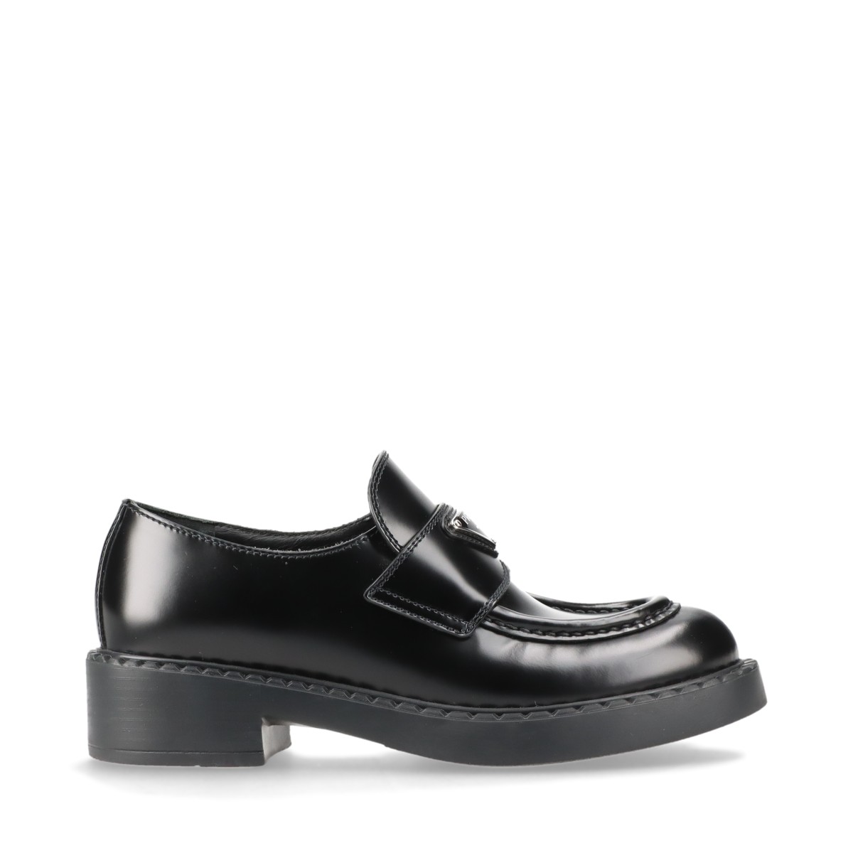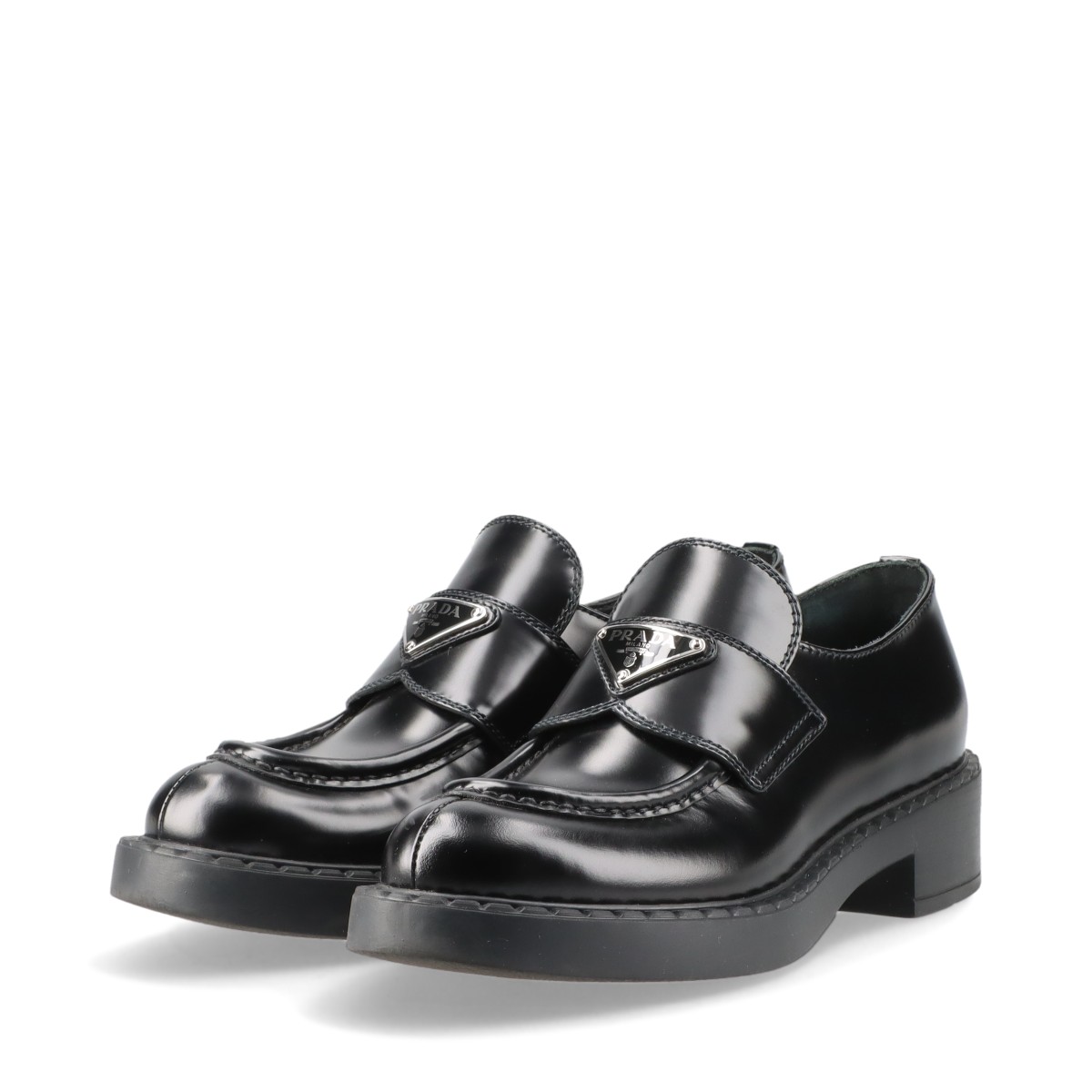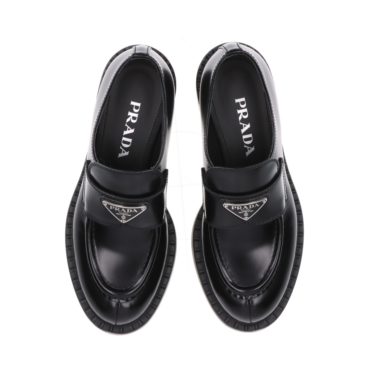 【現行品/美品】PRADA プラダ チョコレート ブラッシュドレザーローファー 黒 革靴 イタリア製 三角プレート 厚底 レディース