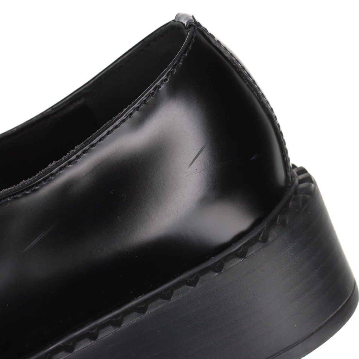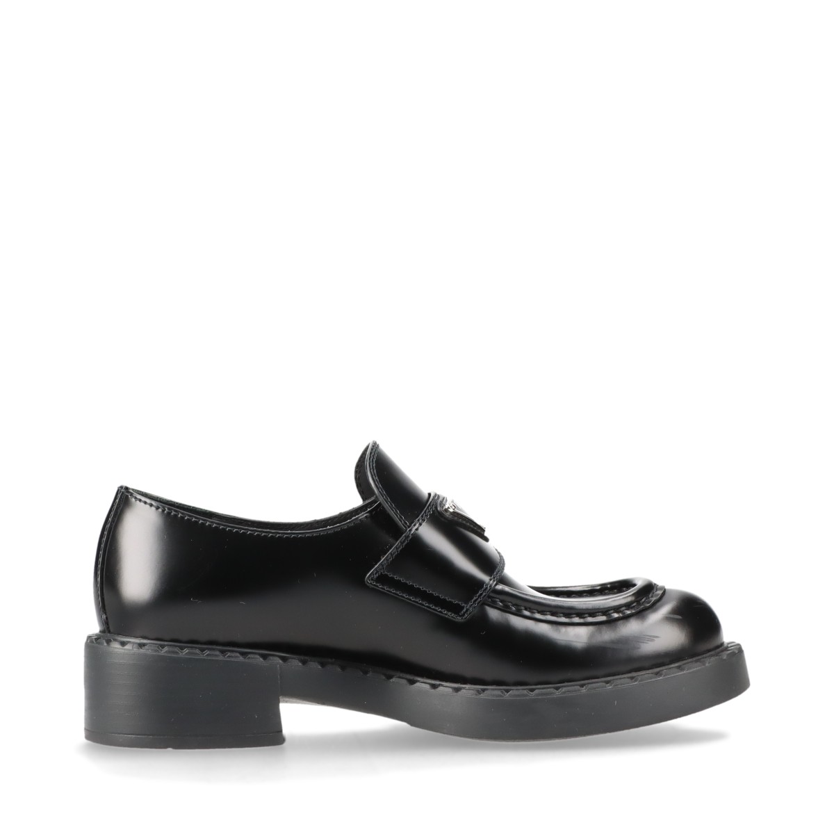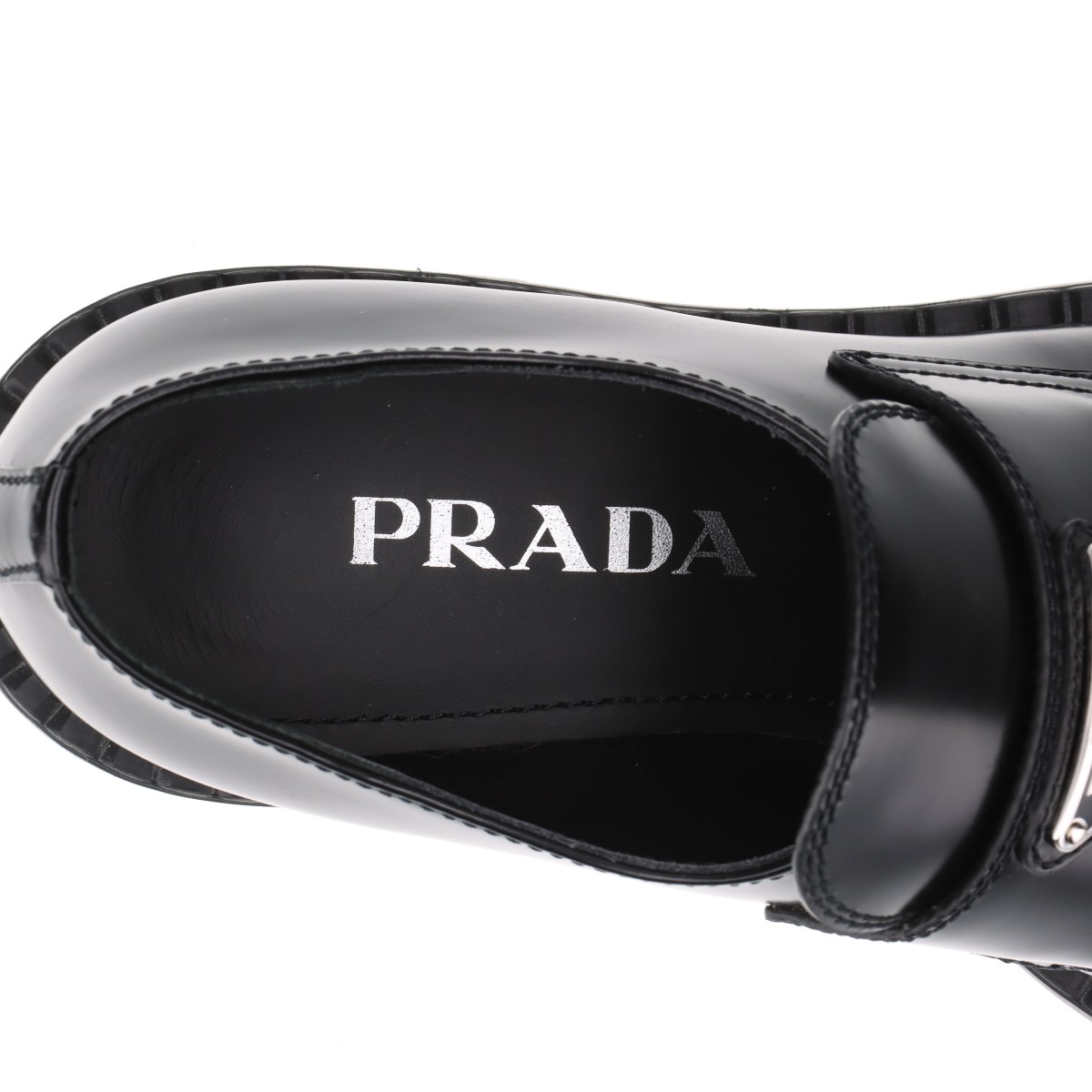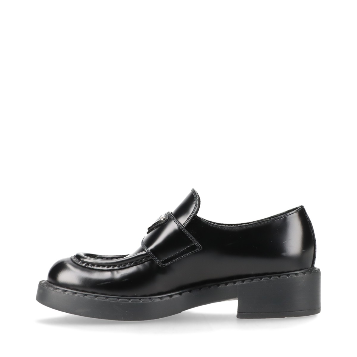 【現行品/美品】PRADA プラダ チョコレート ブラッシュドレザーローファー 黒 革靴 イタリア製 三角プレート 厚底 レディース