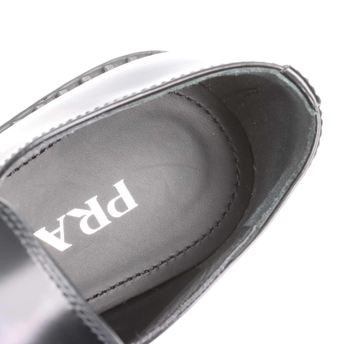 7019 未使用 プラダ チョコレート パテント ロゴプレート ローファー アイボリー