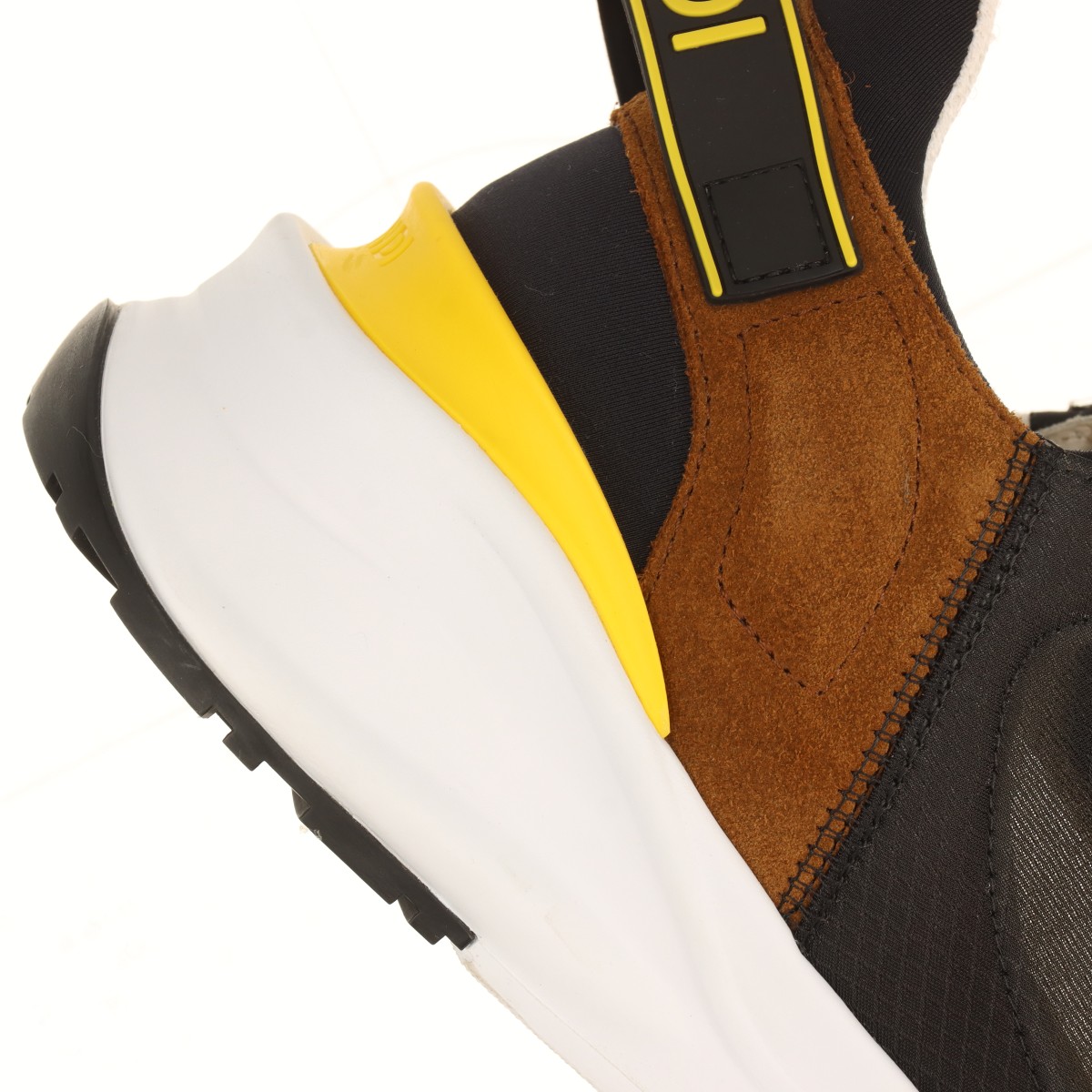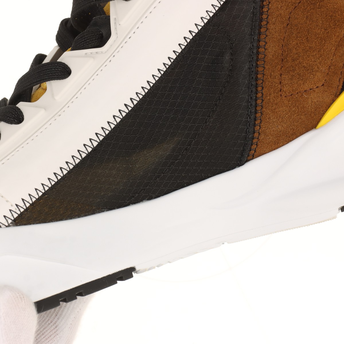 フェンディ フロー レザー×ファブリック スニーカー 7.5 メンズ ブラック×ブラウン ズッカ メッシュ ロゴ サイドジップ 箱 保存袋あり