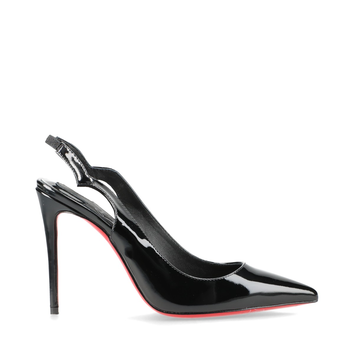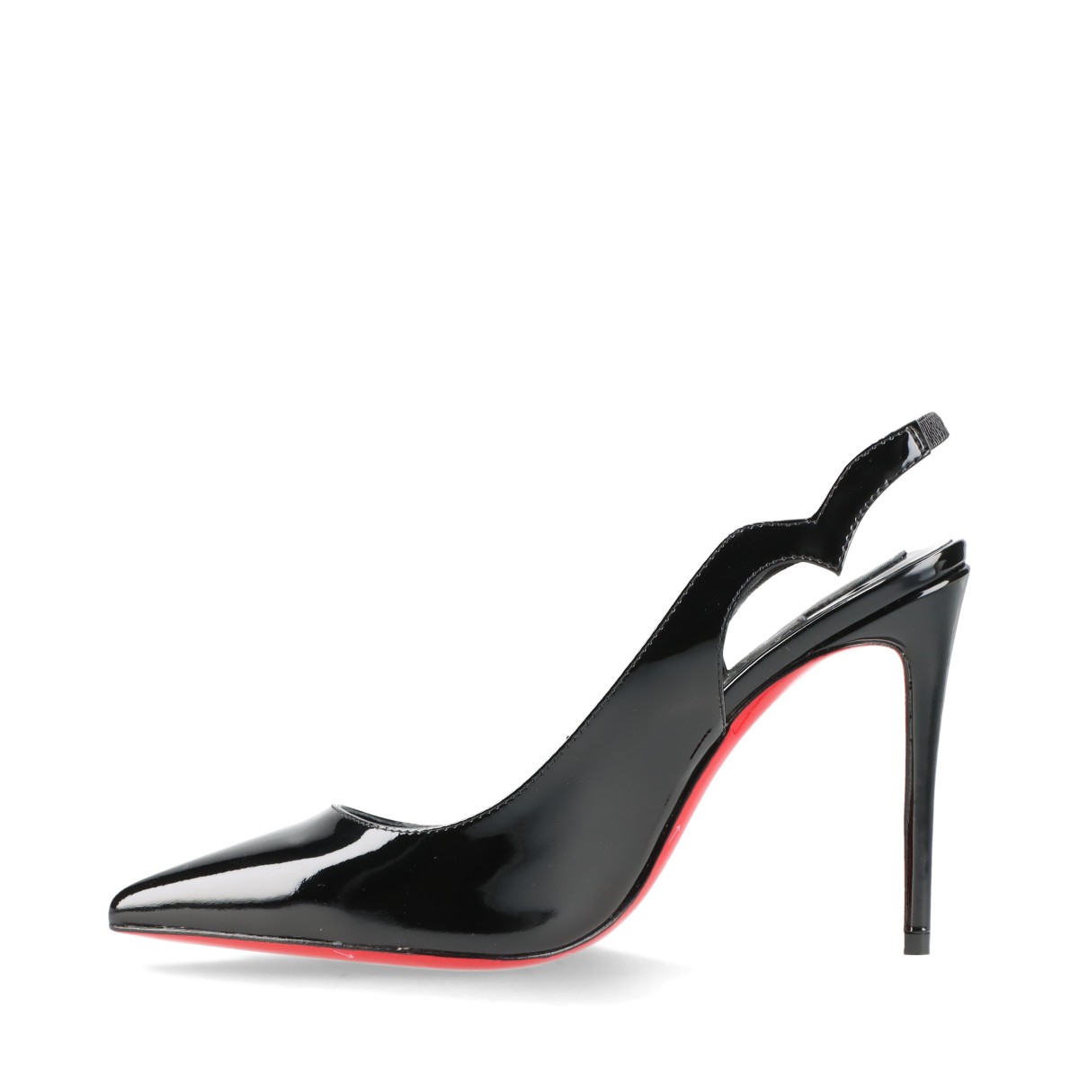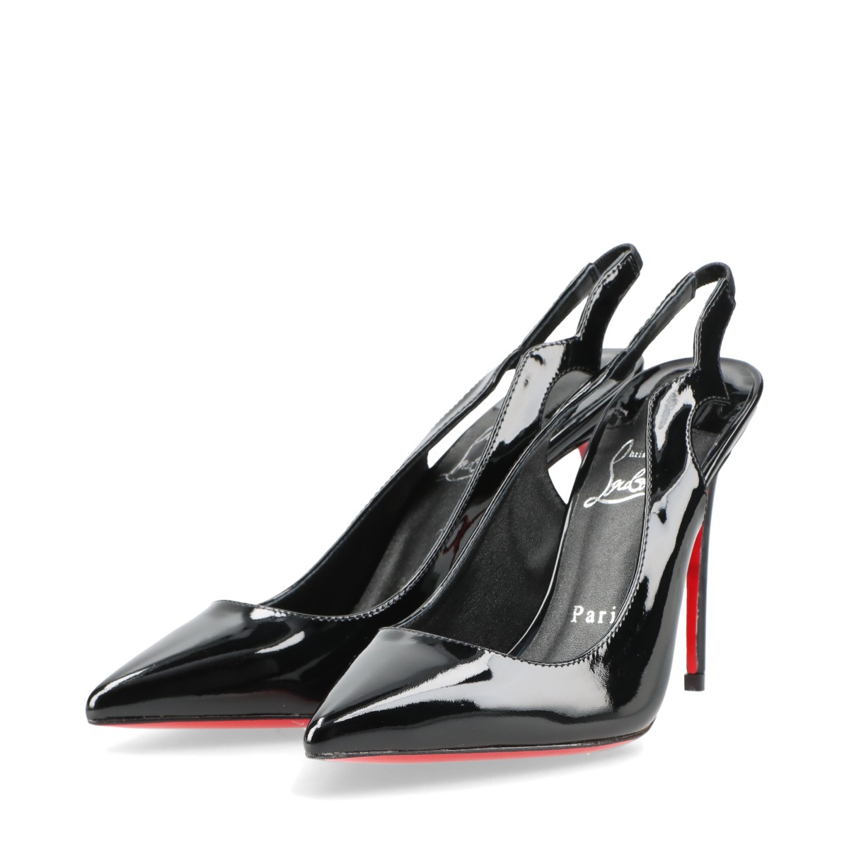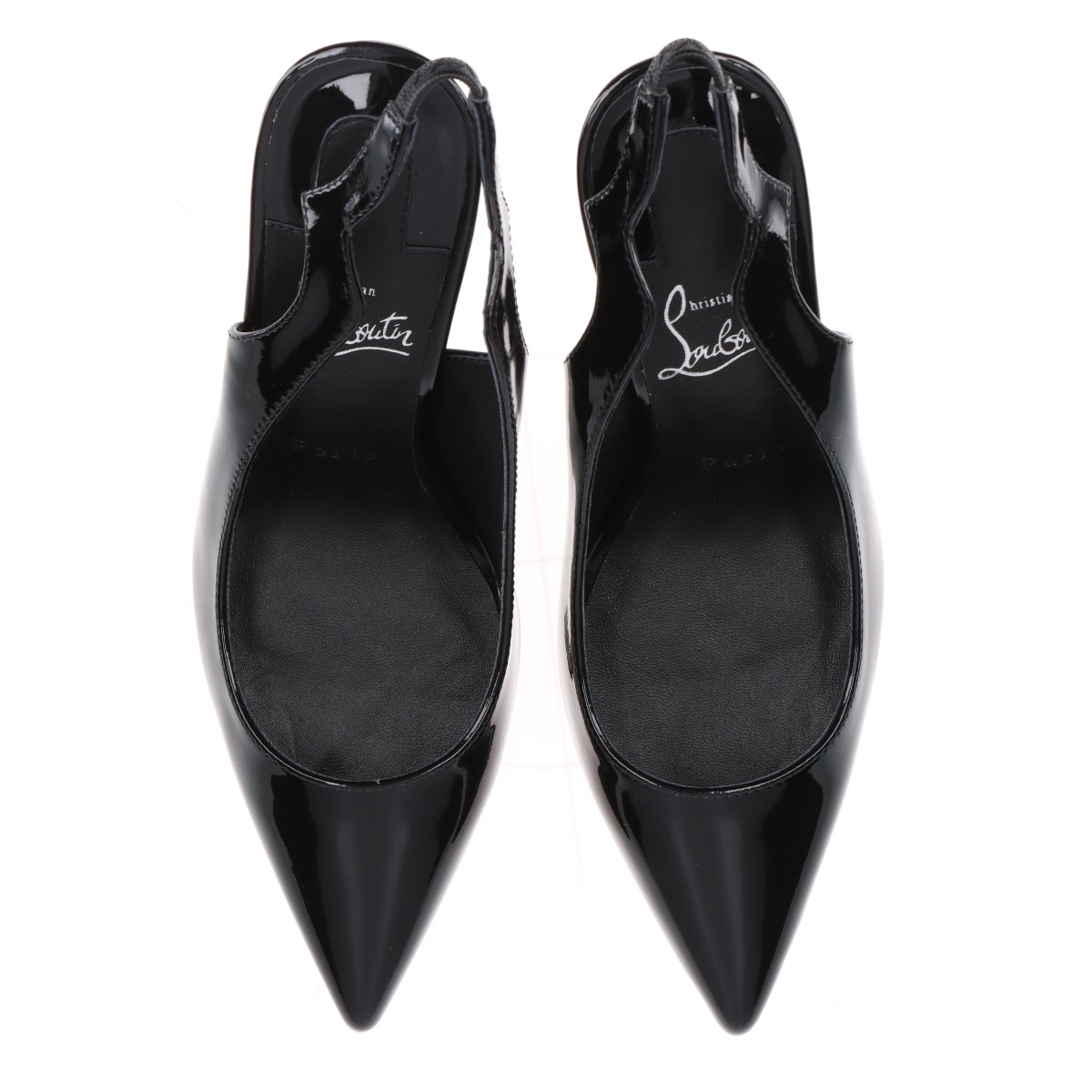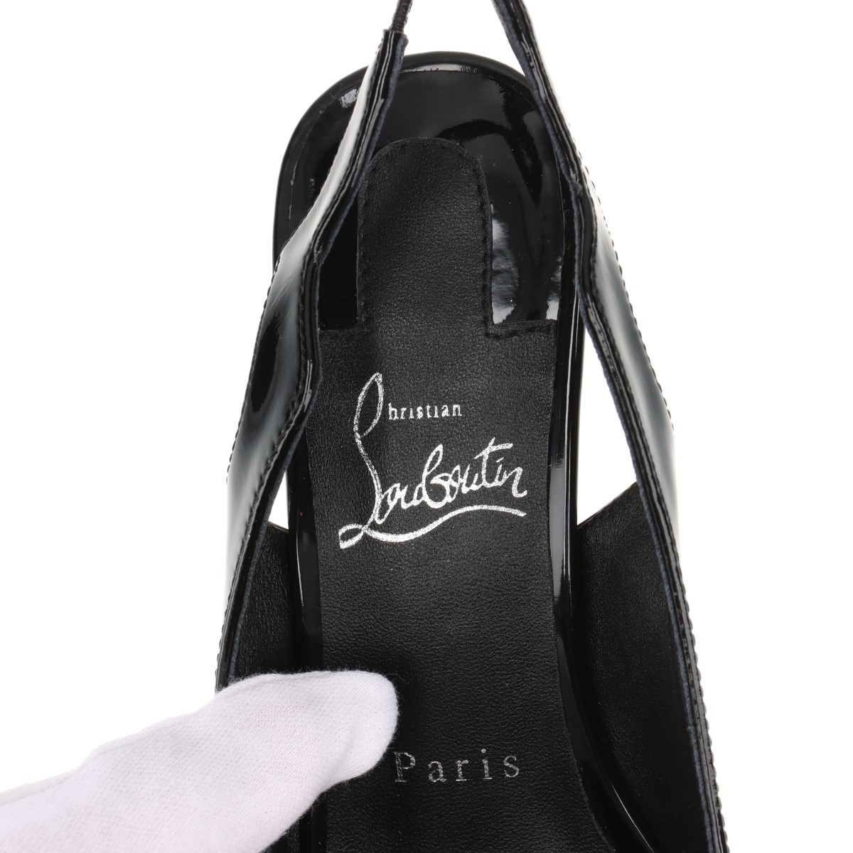 クリスチャンルブタン パテントレザー オープントゥ ヒール パンプス ブラック 37