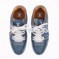 ヴィトン LVトレイナーライン 24年 デニム×レザー スニーカー 7.5 メンズ ブルー×ホワイト MS0254 モノグラム LVロゴ 箱 保存袋あり