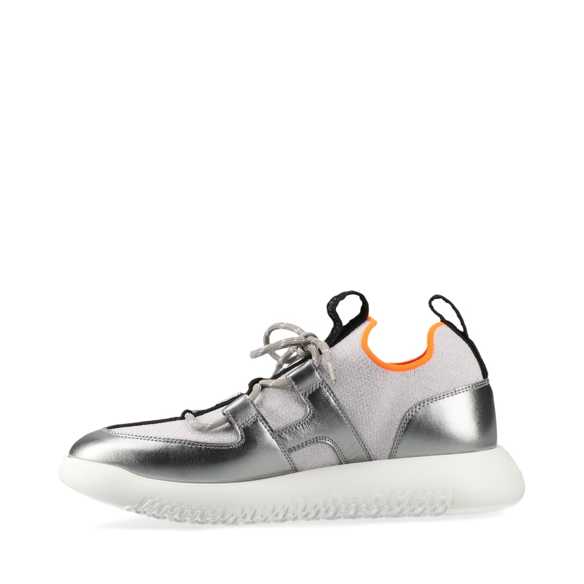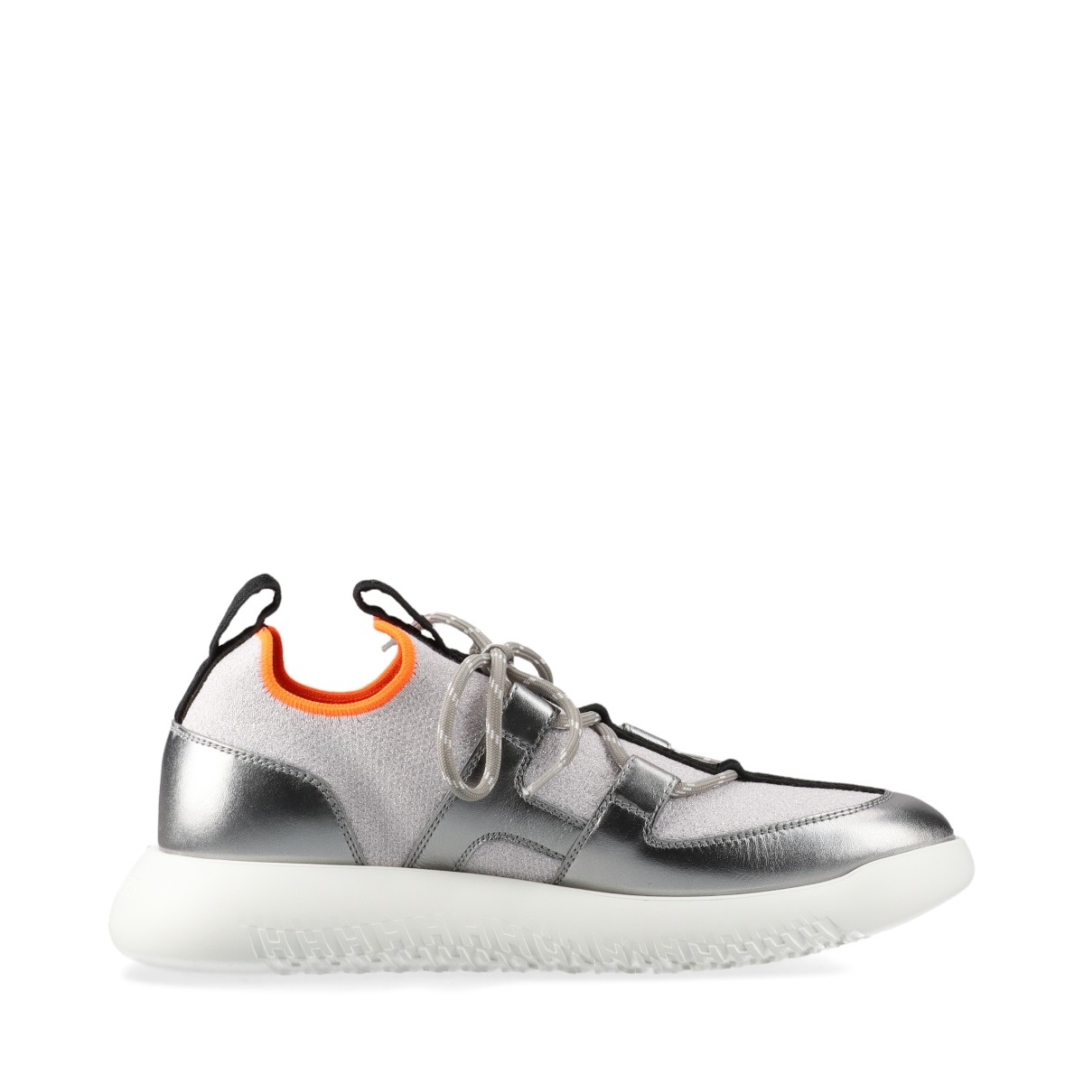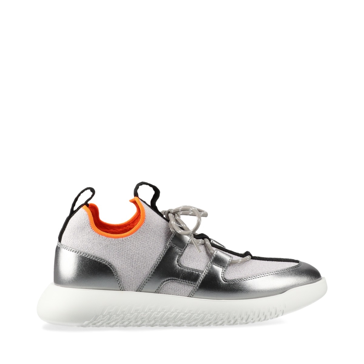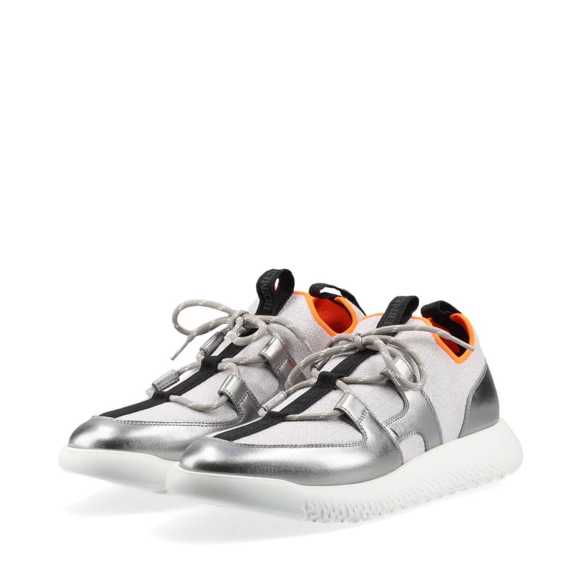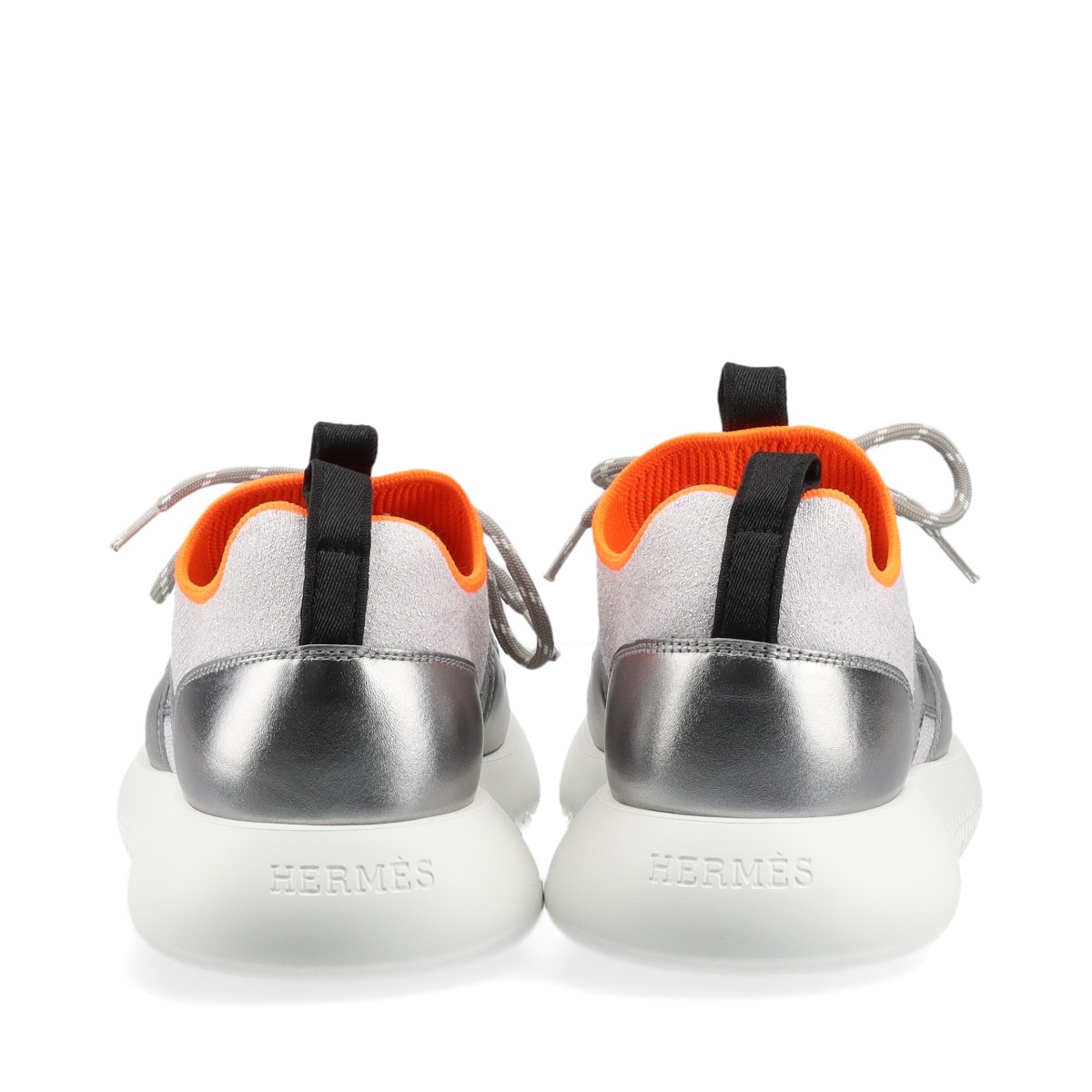 極美品☆HERMES エルメス DUEL デュエル ロゴ入り ローカットスニーカー シューズ シルバー 35.5 保存袋付き イタリア製 レディース【中古】