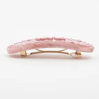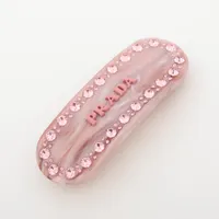 プラダ ロゴ バレッタ GP×プラスチック×ラインストーン ピンク
