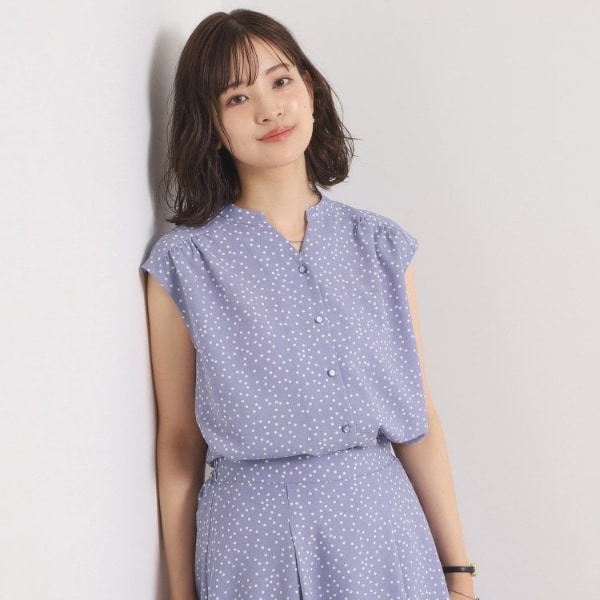 【UVカット/速乾/冷感/洗濯機OK/洗濯後しわになりにくい】麻調ストレッチタックブラウス<ラク服シリー