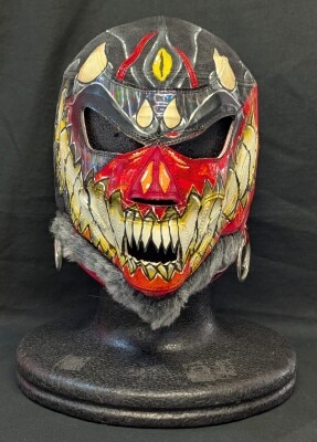 プロレスマスク【アルファ・ウルフ スッポリタイプ(緑生地・手描きペイント・ラインストーン×黒フチ)】タグなし 本人使用 サイン入り