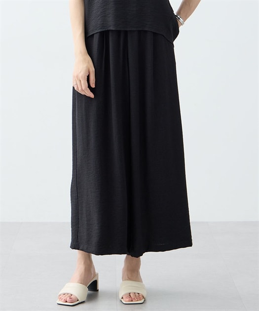 【接触冷感洗えるウエストゴム】ウォッシャブルリネンイージーワイドパンツ