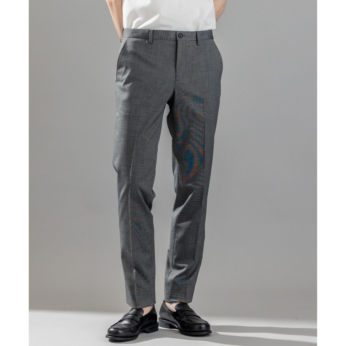 上品さのある単品パンツ。スーパークリース加工により、パンツを常にきれいに保ちたい、手間を省きたい方におすすめ。ビジネスシーンで好印象を与え幅広くコーディネイトできるアイテム。