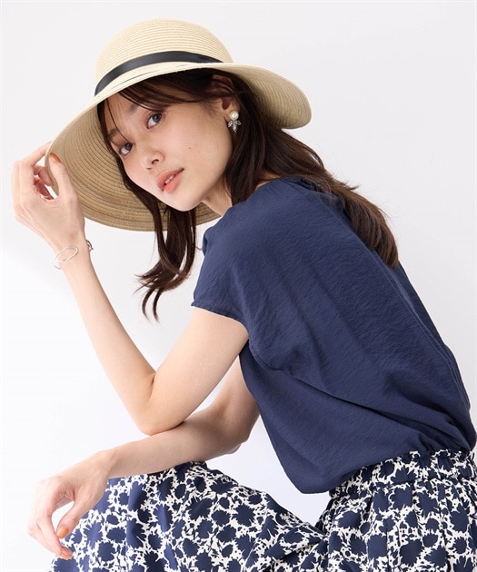 BLK トリコリボン巻 むぎわら帽子風ハット 超軽量 フェイクジュートハット