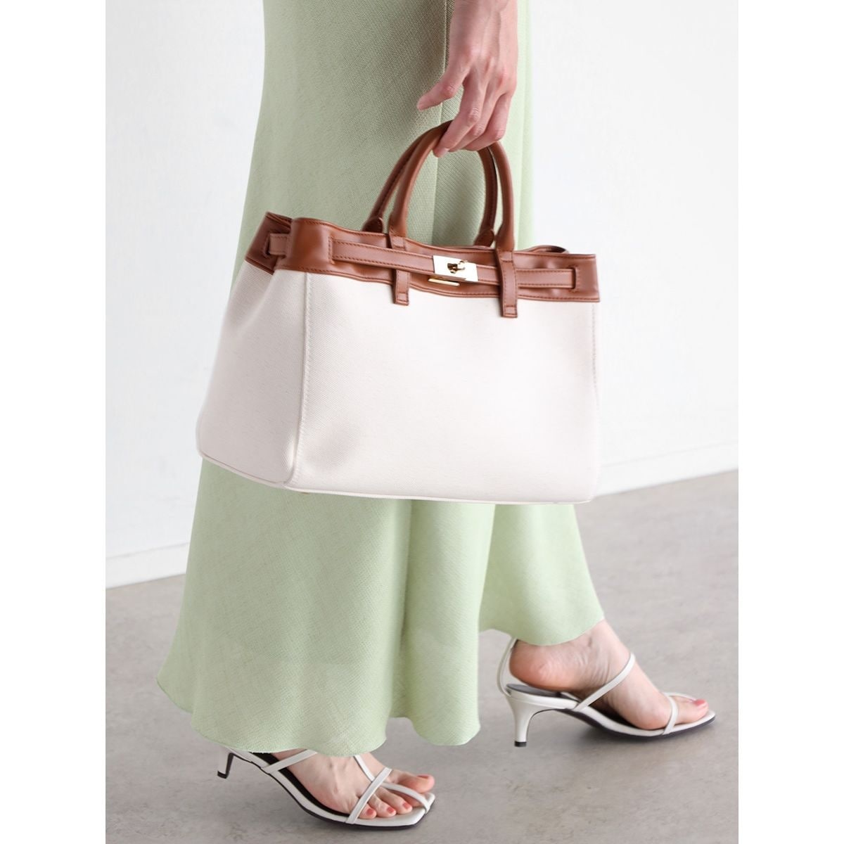 バッグ本体の金具の煌めきとエコレザーとのコンビネーションで、カジュアルに寄り過ぎることのない、オンオフ問わずに使えるアイテムです。