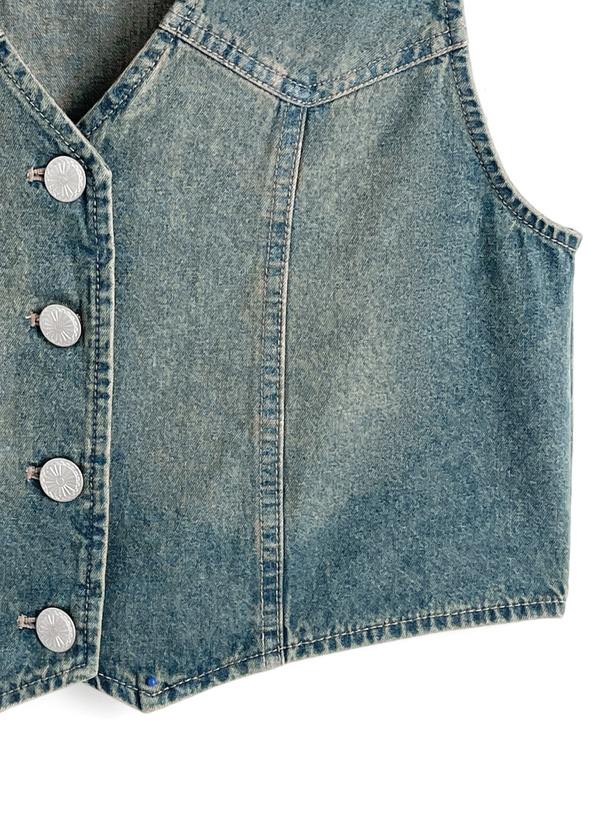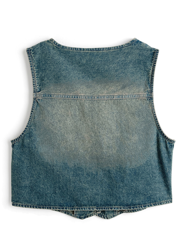 しっかりとしたデニム地で、コンパクトに仕上げたスタイリッシュなベスト。