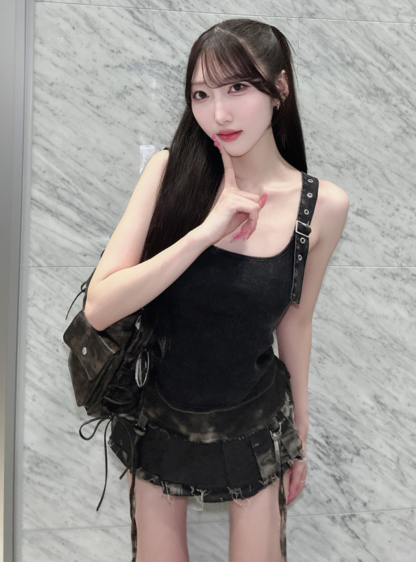 ベルトストラップデニム風タンクトップ