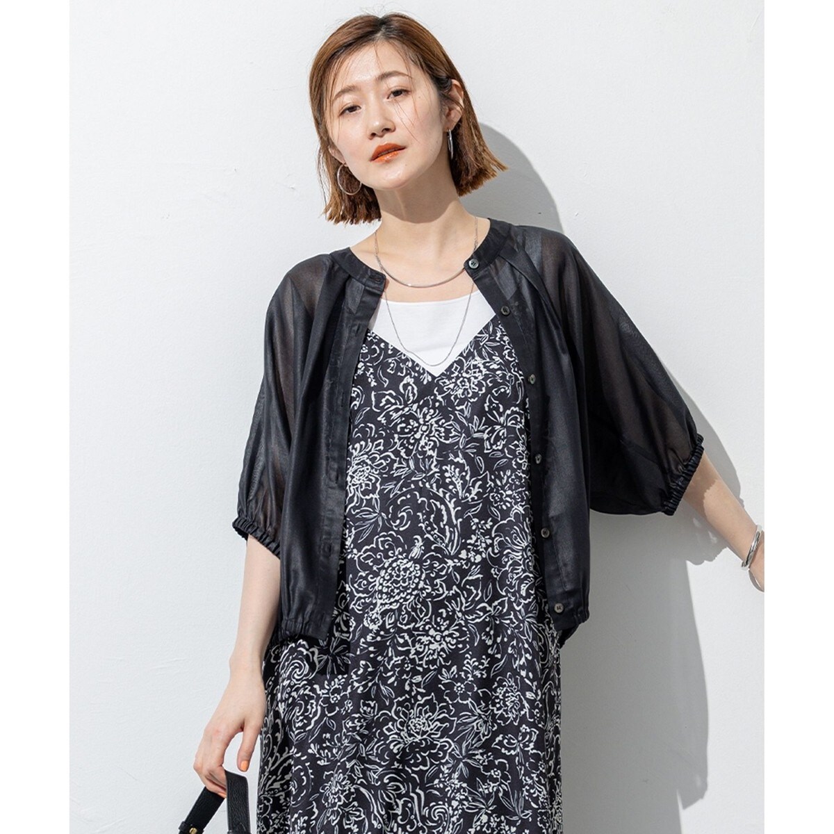 身体のラインを拾わずに涼しげに装えるのが魅力のデザインブラウス