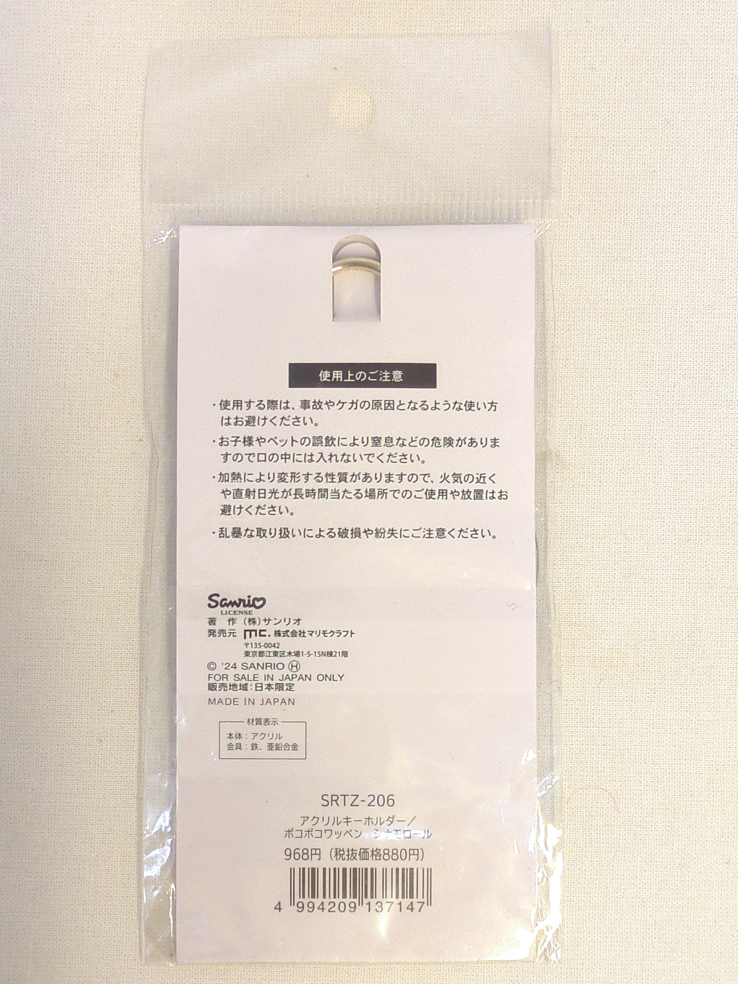 マリモクラフト シナモロール アクリルキーホルダー ポコポコワッペン 2024年