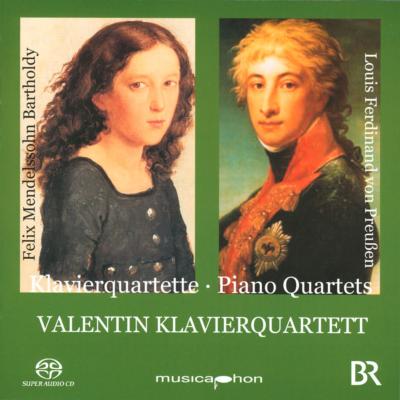 フリードリヒ大王の甥による作品とメンデルスゾーン作品のカップリングルイ・フェルディナンド・フォン・プロイセン(1772-1806)は、バッハとも音楽的親交があったことで知られるフリードリヒ2世(フリードリヒ大王)の甥にあたる人物。どのような音楽教育を受けたかということについて詳細な資料は残されていませんが、ロココを思わせる雰囲気も漂う美しい作品となっています。このプロイセンのピアノ四重奏曲の書き方は、後の作曲家たちの規範の一つとなったとされています。 メンデルスゾーンのピアノ四重奏曲は、14歳の時に作曲されたものですがすでに信じられないような天才の輝きを見せています。(キングインターナショナル)このアルバムはハイブリッド・タイプのSACDなので、通常CDのステレオ音声のほか、SACDのステレオ音声、SACDのマルチチャンネル音声という3つの音声が収録されています。 直接音の切れ味、楽器の音の細密な描写を味わうのであれば2チャンネル・ステレオが、ホールに響く全体の雰囲気を味わうにはマルチチャンネルが適しているとよくいわれますが、それらを聴き較べて楽しむのもハイブリッドSACDならではの楽しみと言えるでしょう。・ルイ・フェルディナンド・フォン・プロイセン:ピアノ四重奏曲変ホ長調 op.5・メンデルスゾーン:ピアノ四重奏曲第2番へ短調 op.2 ヴァレンティン・ピアノ四重奏団 インカ・フォン・プットカーメル(ヴァイオリン) ウノ・ミナコ(ヴィオラ) ハンノ・クーンス(チェロ) イザベル・シュペート・ロツキー(ピアノ) 録音:2006年 SACD Hybrid CD STEREO/ SACD STEREO/ SACD SURROUND (5.0)Disc11 : Valentin Klavierquartett - Quartett Fuer Klavier U2 : 1. Allegro Espressivo3 : 2. Adagio Espressivo4 : 3. Tempo Di Menuetto, Ma Moderato - Trio5 : 4. Rondo: Tempo Moderato6 : Valentin Klavierquartett - Quartett Fuer Klavier U7 : 1. Allegro Molto8 : 2. Adagio9 : 3. Intermezzo: Allegro Moderato10 : 4. Allegro Molto VivacePowered by HMV