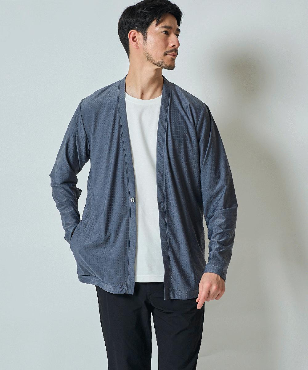 トロッとした肌触りとハイパーストレッチ素材で寒暖差に対応。着てる感覚を忘れさせるほど着心地の良いサマーカーディガン。