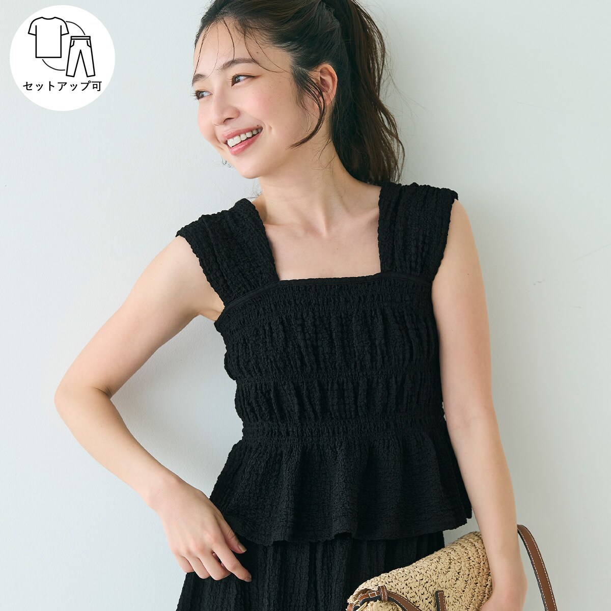 【シワが目立ちにくい】サロペット シャーリング 全4色