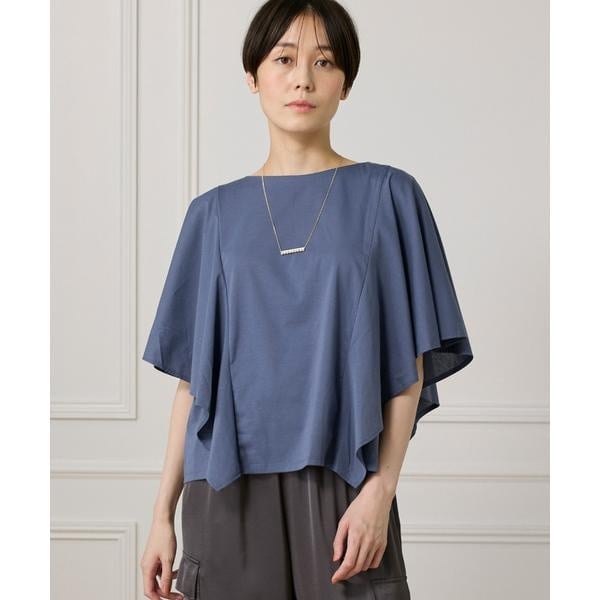 ■デザインふんわりと広がる贅沢な分量のフレアースリーブが、女性らしい優雅な動きを演出する一枚。内側はノースリーブ仕様になっており、肌離れが良く、見た目にも着心地にも清涼感をプラスしてくれます。二の腕をしっかりカバーする袖丈は、気になる部分をさりげなくカモフラージュしながら、軽やかな印象に。バックスタイルには、後ろ中心にコンパクトなスリット開きとボタンをあしらったデザインで、抜かりない仕上がりです。さらっと1枚で着るだけで、華やかさと上品さを兼ね備えたスタイルが完成します。■素材綿ポリエステルのさらりとした肌触りの生地を使用。暑い季節にも快適に過ごせる清涼感のあるタッチが魅力です。見た目はまるで布帛のようなハリ感があり、美しいフレアーシルエットをしっかりとキープ。程よい光沢感が加わることで、カジュアルすぎず洗練された印象になります。・水洗い可・裏地なし ・バックボタンあり■サンプル撮影商品画像の商品はサンプルです。実際の商品とはサイズや色味、素材、デザイン等の仕様が若干変更になる場合がございます。■カラーについては、可能な限り実際の商品に近いカラーで撮影をおこなっておりますが、照明の関係により実際の製品とは色味が違って見える場合があります。またパソコン・スマートフォンなどの環境により、若干製品と画像のカラーが異なる場合もございます。現物と画像のカラー差異については返品理由となりませんので、予めご了承ください。■サイズ表記はあくまで目安となります。