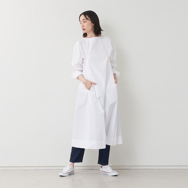 Donia Quinn ドニアクイーン パールボタン ボックスプリーツミニドレス