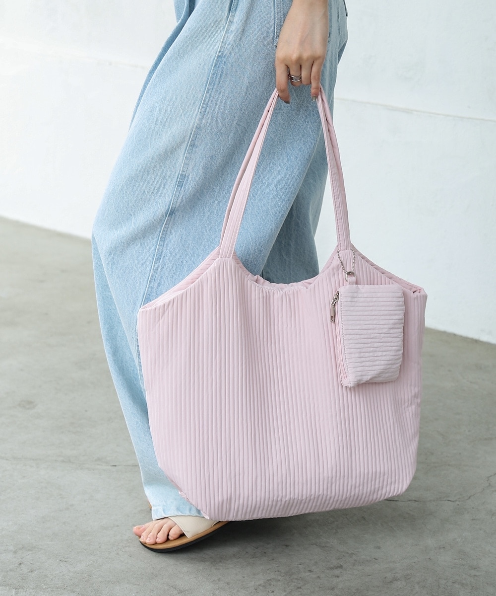 軽量ソフトシュリンク プレートチャーム&ポーチ付きラージトートバッグ