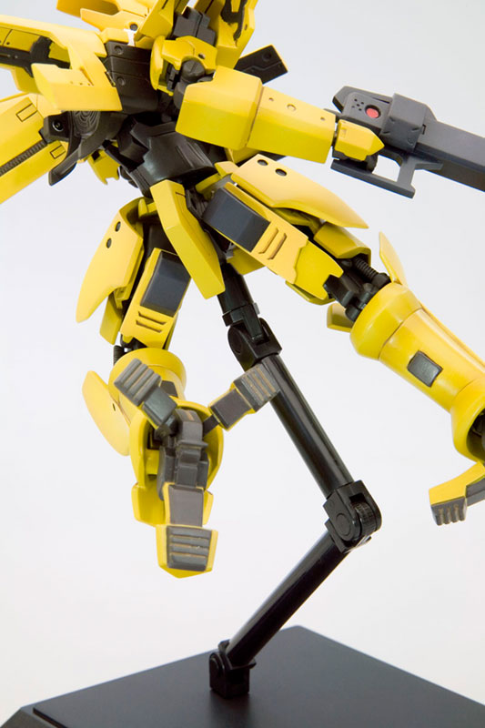 また、キット内部にコトブキヤのオリジナルフレーム、「クロスフレーム」を内蔵していますので幅広いアクションポーズが可能。さらに別売りのフライングベースを使用すれば「跳躍補正装置を装備し、機動性に長ける」という設定そのままに、躍動感あふれるディスプレイが可能になります。